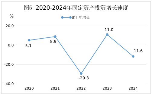 全年固定资产投资比上年下降11.6%。分产业看,第一产业投资下降12.7%,第二产业投资增长7.6%,第三产业投资下降25.0%。民间投资下降6.2%;基础设施投资下降9.5%。先进制造业中,钢铁冶炼及加工投资增长520.9%;优势传统工业中,纺织服装投资增长116.0%,食品饮料业投资增长37.6%。分行业看,批发和零售业、住宿和餐饮业、科学研究和技术服务业投资分别增长39.7%、33.2%和22.6%。
