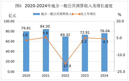 全年全市地方一般公共预算收入76.04亿元,比上年增长4.3%;其中,税收收入35.24亿元,下降7.7%,非税收入40.80亿元,增长17.5%。全市一般公共预算支出370.69亿元,增长10.3%;民生支出合计275.55亿元,占一般公共预算支出的比重达74.3%;其中,城乡社区、节能环保、住房保障支出分别增长40.7%、38.6%和36.2%。
