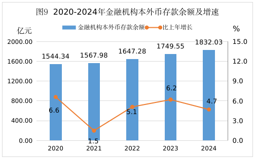年末,全市金融机构本外币存款余额1832.03亿元,比上年增长4.7%;其中,住户定期及其他存款增速达9.3%。本外币贷款余额1874.11亿元,比上年增长2.3%;其中,住户中长期经营贷款增长9.6%。