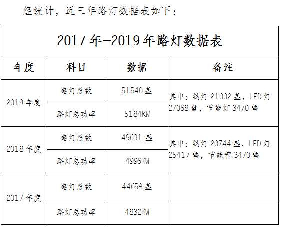 河源市城市管理和综合执法局近三年城市照明路灯统计表
