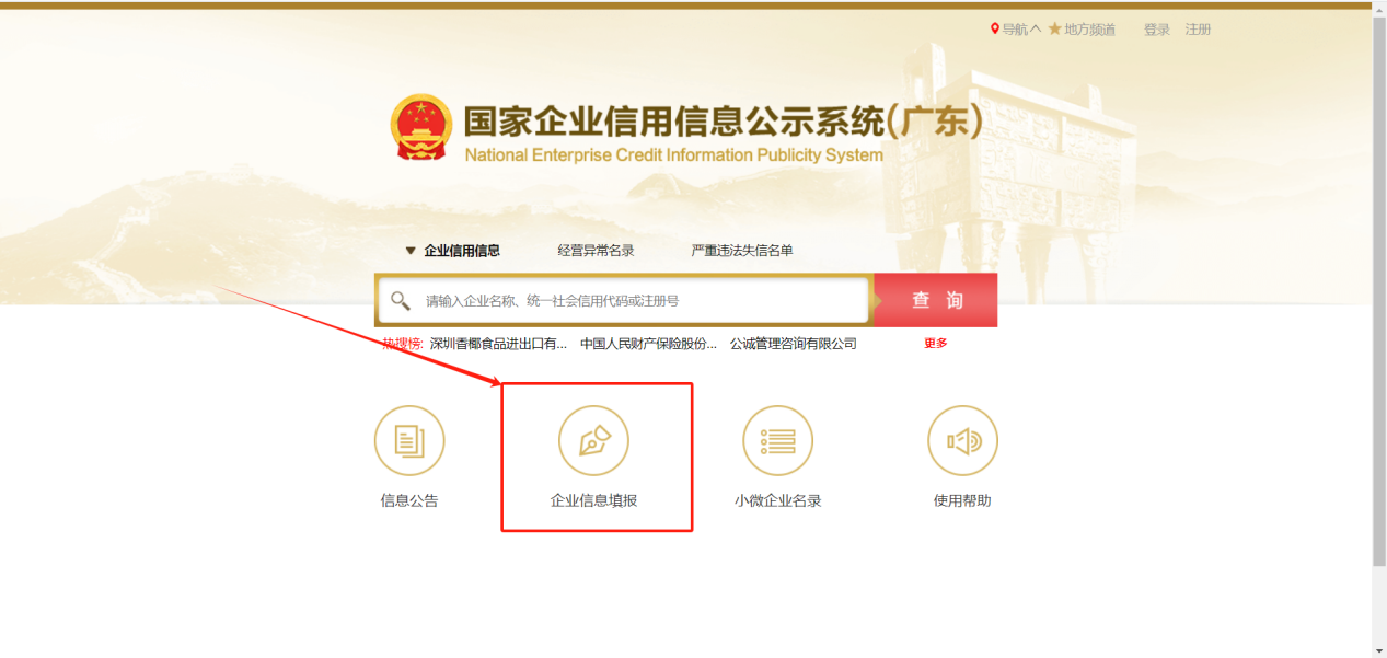 电脑端网址://gsxt.amr.gd.gov.cn/aiceps/#/login/index