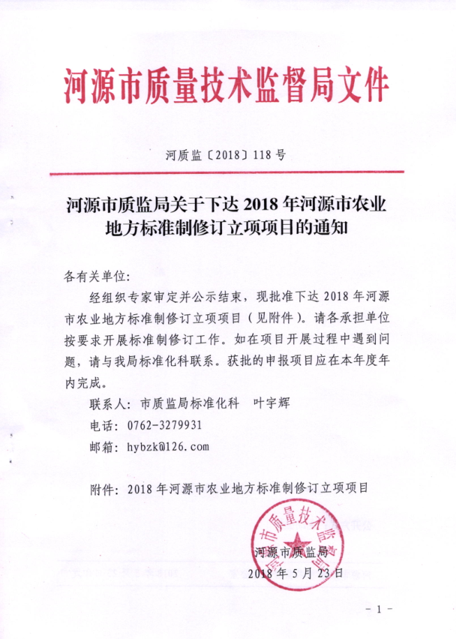 河源市农业地方标准制修订立项项目的通知