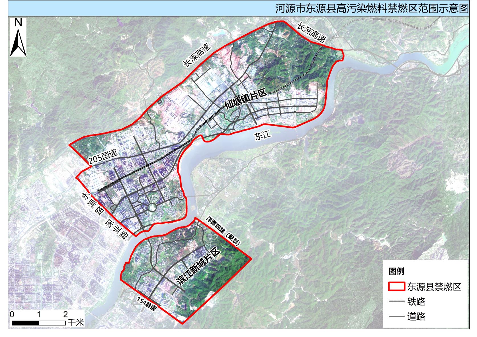 1.仙塘镇片区:长深高速-东江-深业路和永源路及其西延线-205国道-河源市固体废物处置中心北边界围成的闭合区域,面积32.37平方公里;