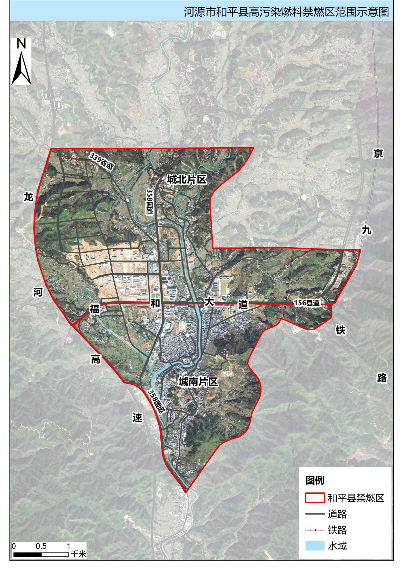 2.城南片区:156县道-福和大道-龙河高速-G358及和平中心城区东边界围成的闭合区域,面积7.25平方公里。