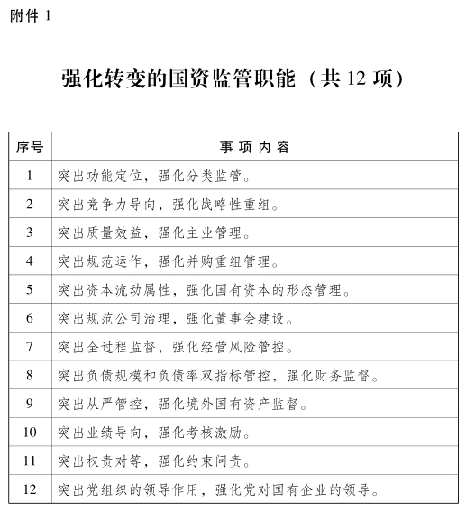 附件:1.强化转变的国资监管职能(共12项) 2.精简的国资监管事项(共26项)
