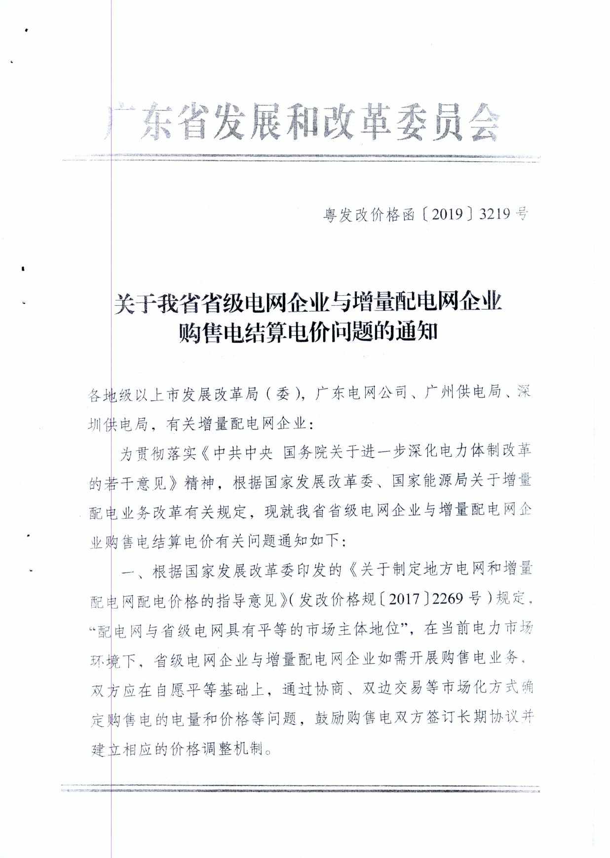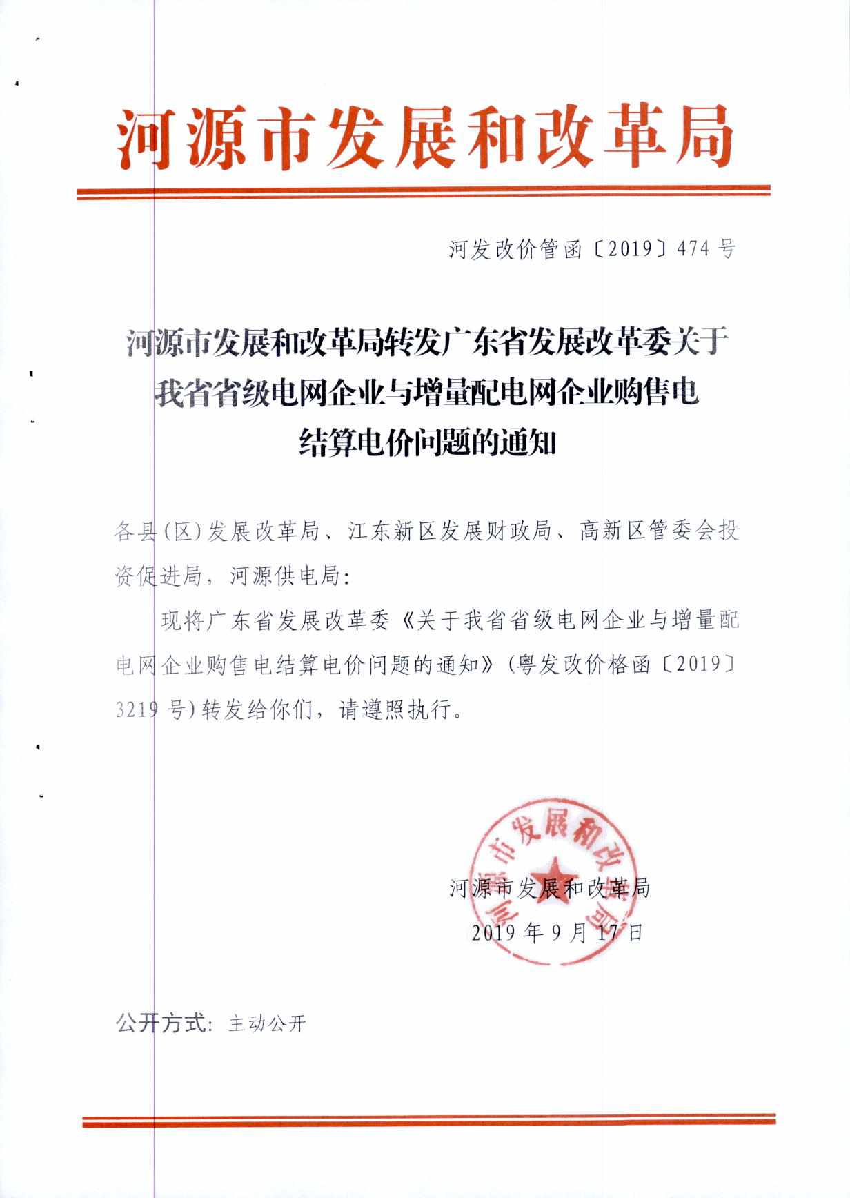 河源市发展和改革局转发广东省发展改革委关于我省省级电网企业与配电企业购售电结算电价问题的通知