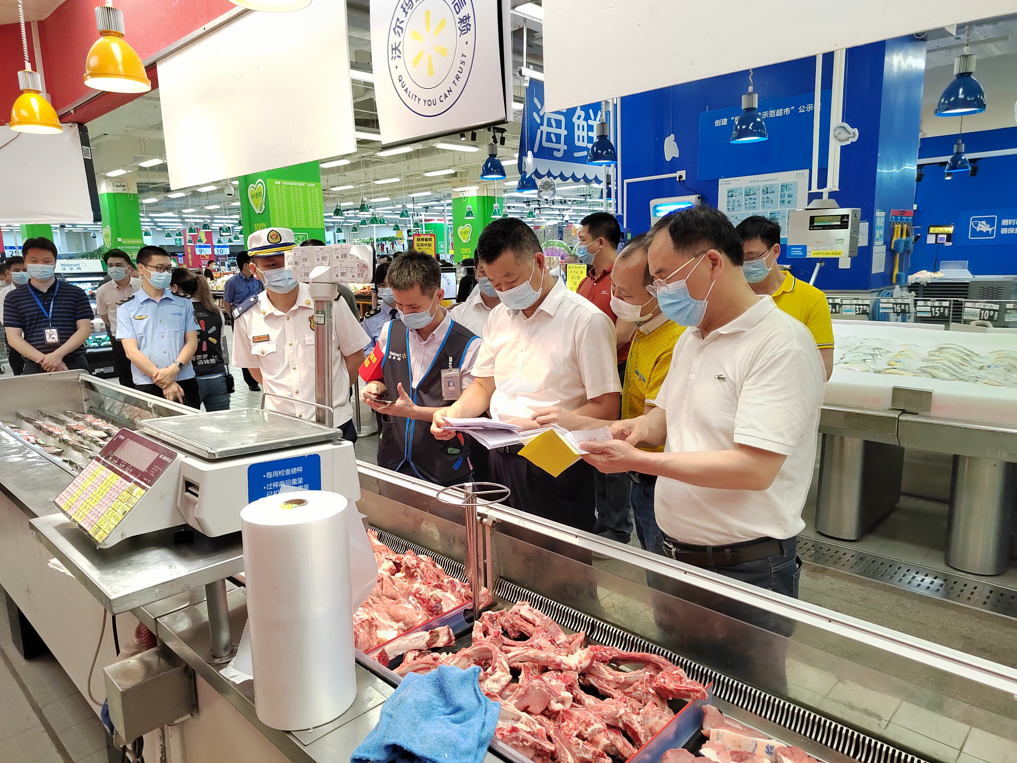 检查组一行先后前往了游乐场、超市、连锁药店等重点场所进行检查。在市文化广场游乐场,检查组重点查看了游乐设施运行前测试和检修情况以及特种设备安全维护情况,检查工作人员持证上岗、安全管理人员和操作人员疫苗接种、核酸检测及特种设备安全管理制度落实、应急救援措施、安全操作规程等情况。在万隆城商业中心沃尔玛购物广场,检查组重点检查了节日市场销售的米、面、油等大宗消费食品质量安全情况,详细询问了食品进货渠道、保质保鲜日期、日常销售等情况;同时,检查了消防设施管理情况。在河源市百杏林药业连锁有限公司万隆城分公司,检查组认真查阅了有关退烧药、咳嗽药目录、销售上传记录、社区“三人小组”联系方式及联系记录。
