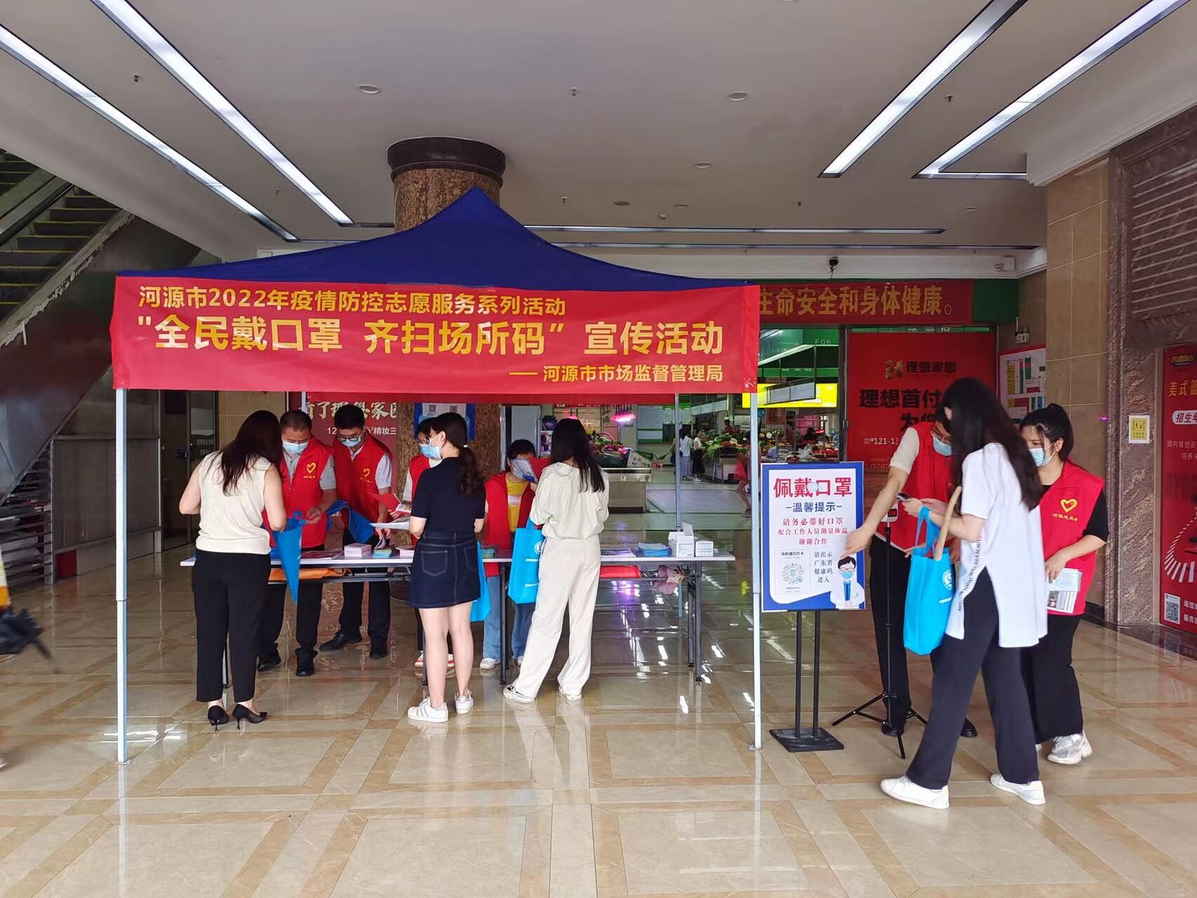 贯彻落实当前农贸市场常态化疫情防控工作要求,切实发挥志愿服务在疫情防控中的作用,进一步筑牢安全屏障,6月16日,市市场监管局在理想农贸综合市场开展“全民戴口罩 齐扫场所码”疫情防控志愿服务活动。