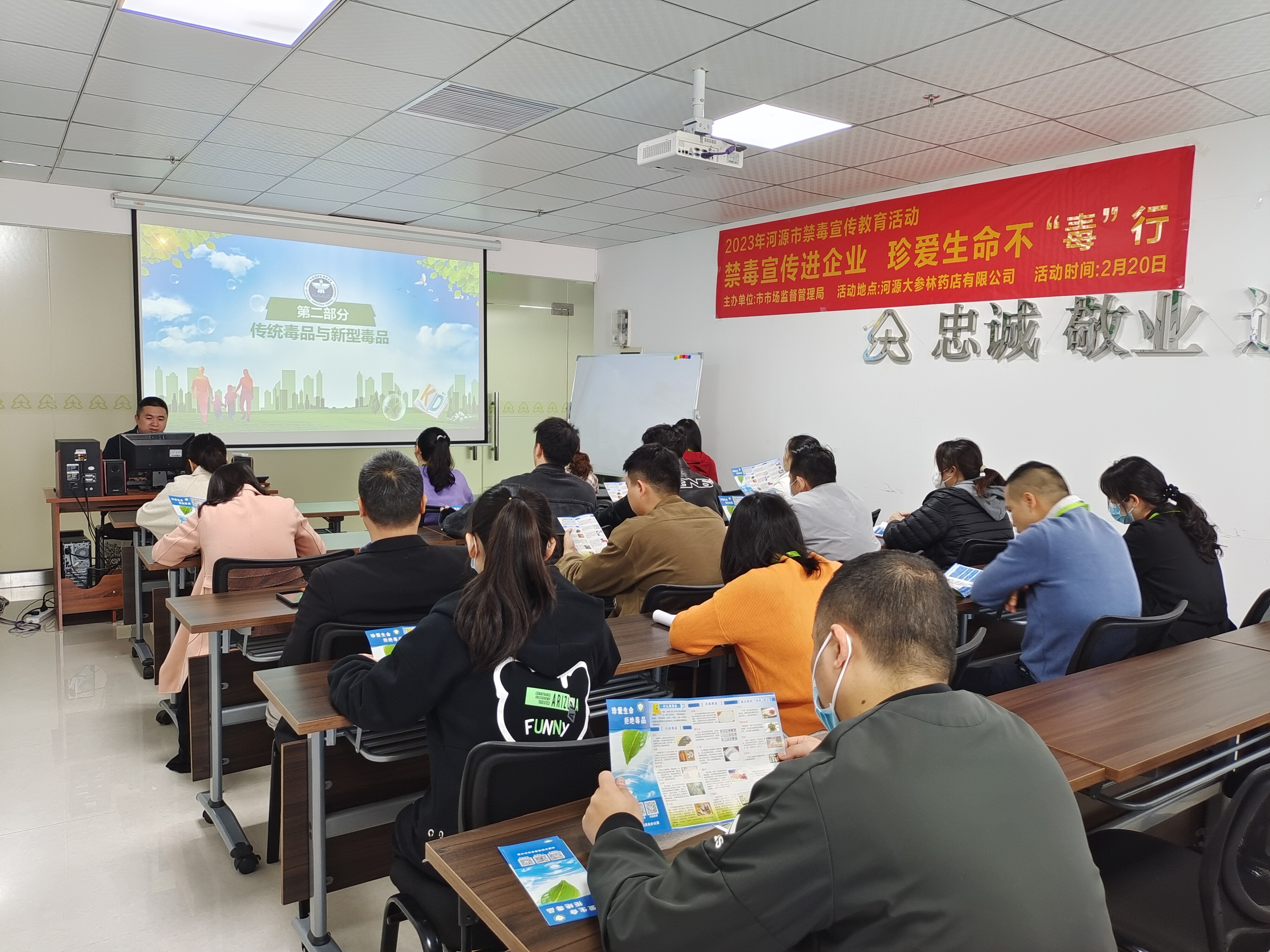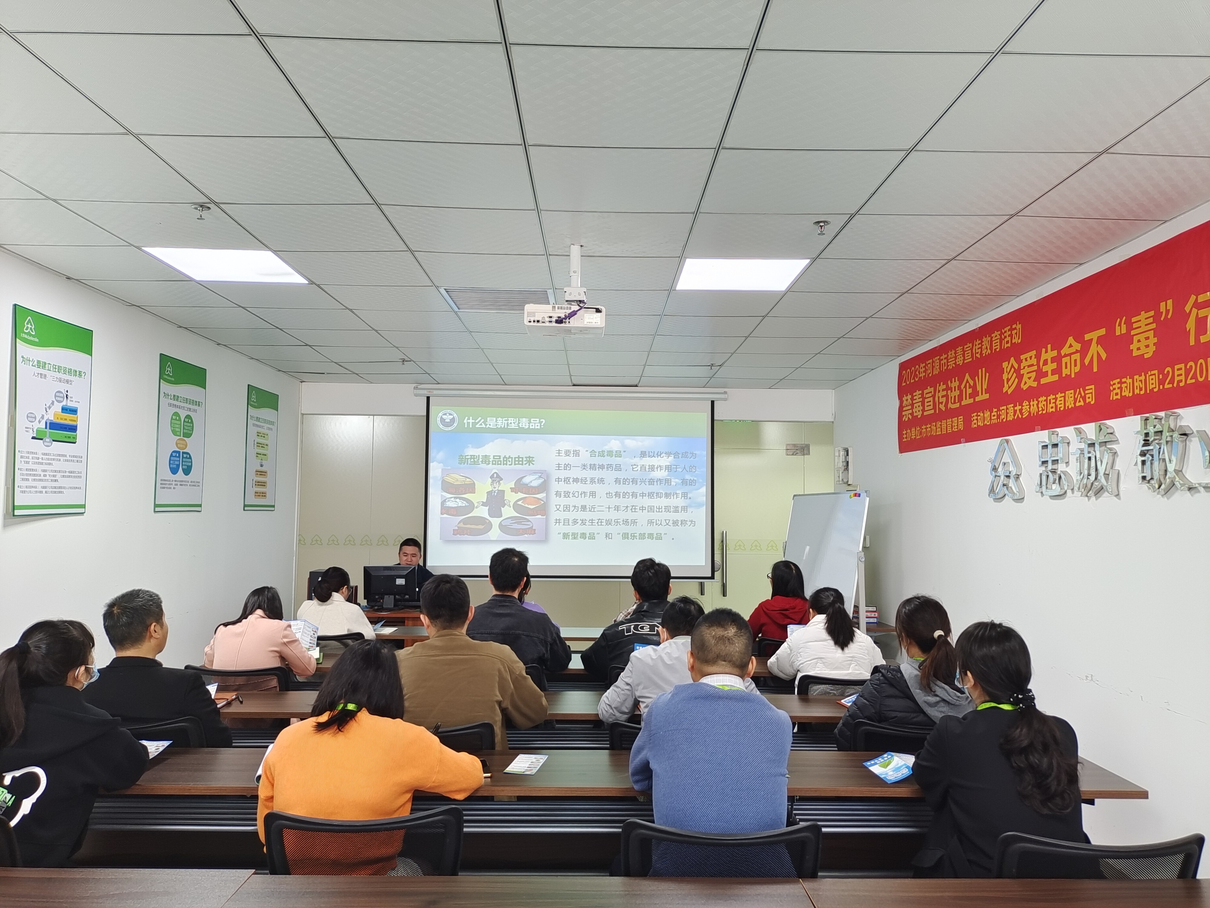 为进一步提高辖区内企业从业人员、消费者识毒、拒毒、防毒能力,有效预防涉毒问题的发生,2月20日,河源市市场监督管理局在河源市大参林药店有限公司开展以“禁毒宣传进企业 珍爱生命不“毒”行”为主题的禁毒宣传教育活动。