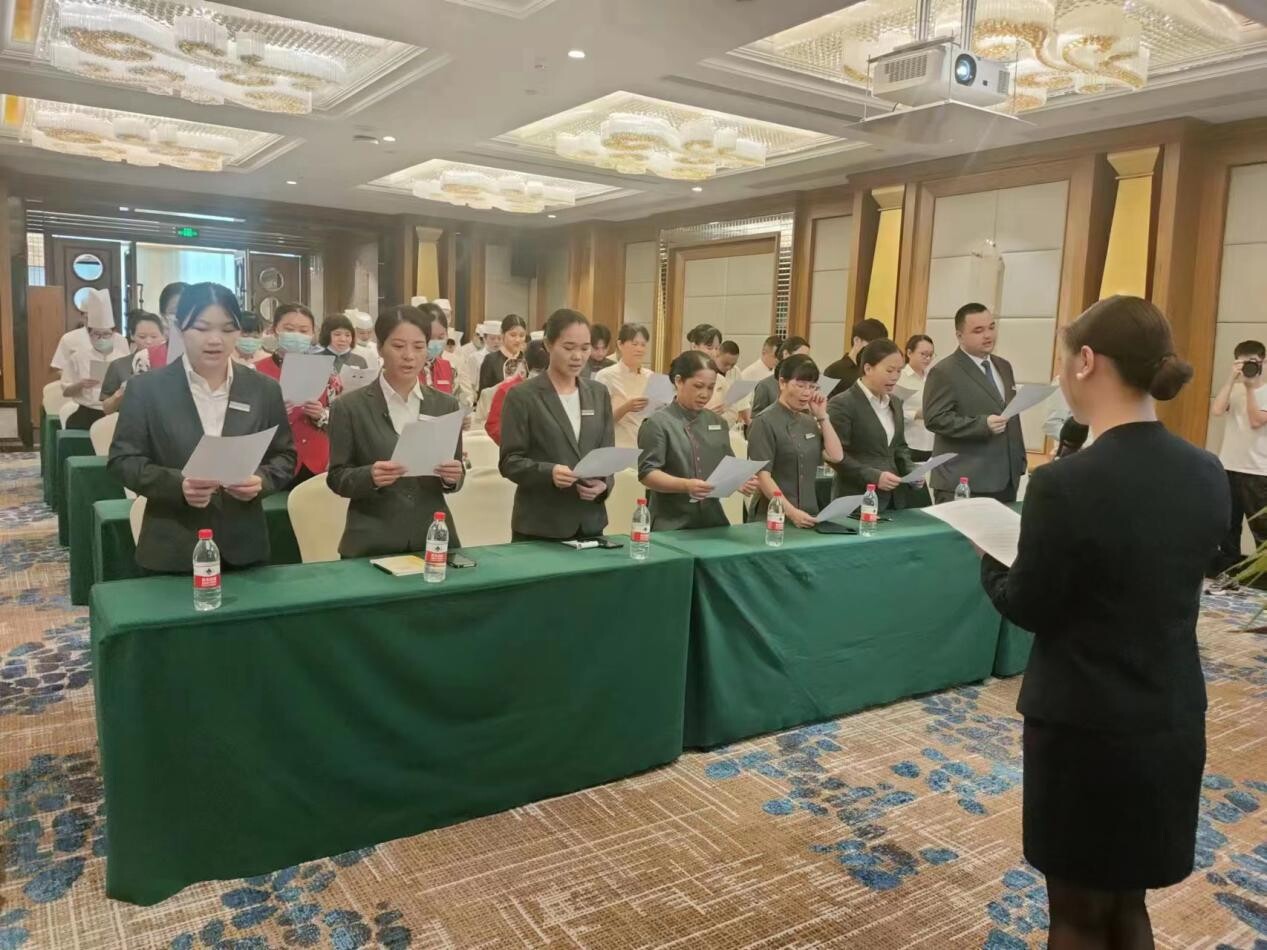 在酒店餐饮部部长带领下,参会的餐饮从业人员宣读了个人承诺书,现场许下“制止餐饮浪费 弘扬节俭新风”的承诺。大家纷纷表示,通过此次主题讲座活动对“反对浪费·崇尚节约”有了更深层涵义的理解,将牢固树立反对餐饮浪费意识,切实承担好主体责任,及时制止浪费行为,以实际行动践行承诺。
