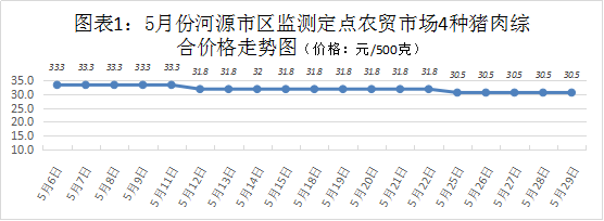 河源市发展和改革局的价格监测数据显示:与上月比较,5月份市区的菜篮子价格总体稳中趋降。畜类、蔬菜、水产品价格小幅下跌,禽类、粮油价格保持稳定。