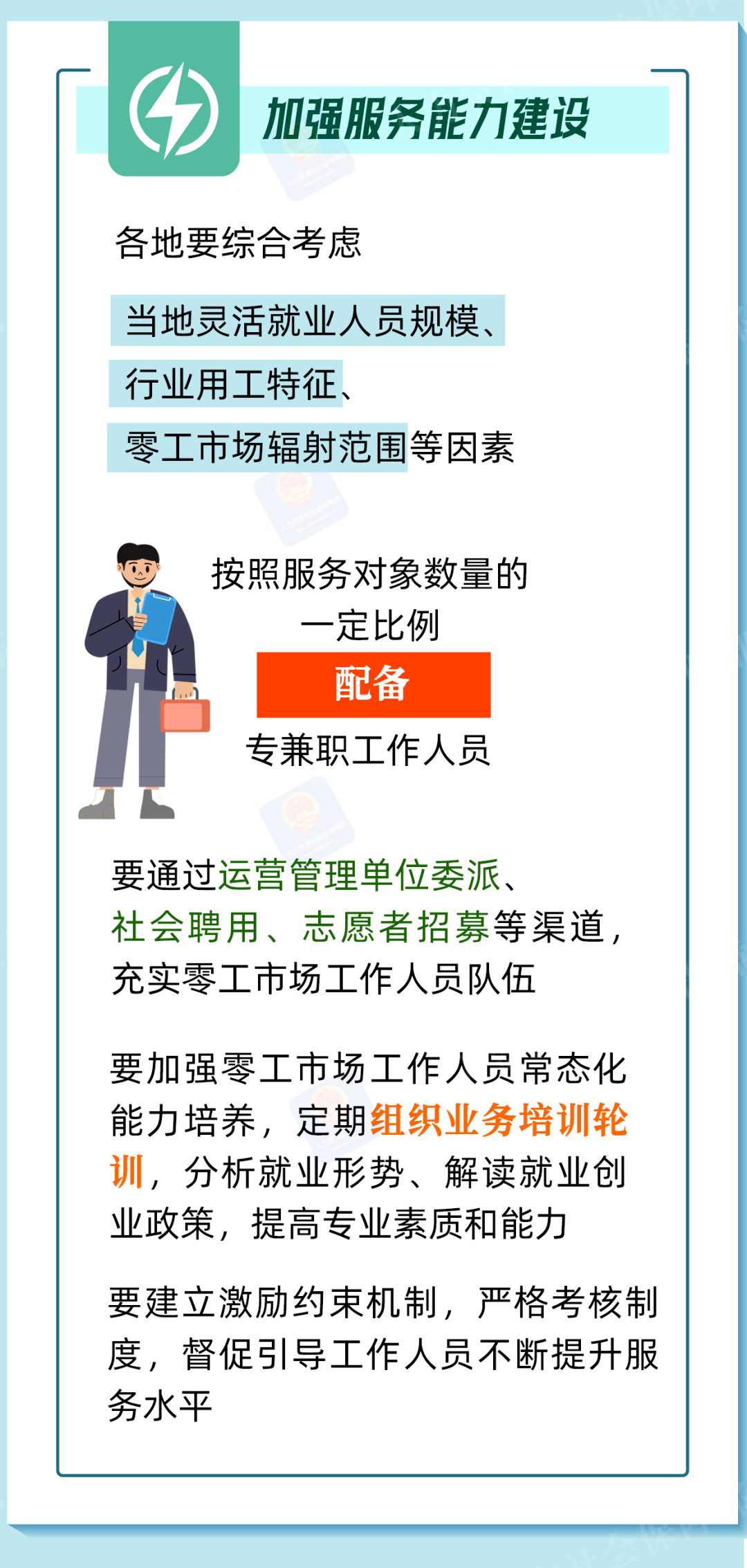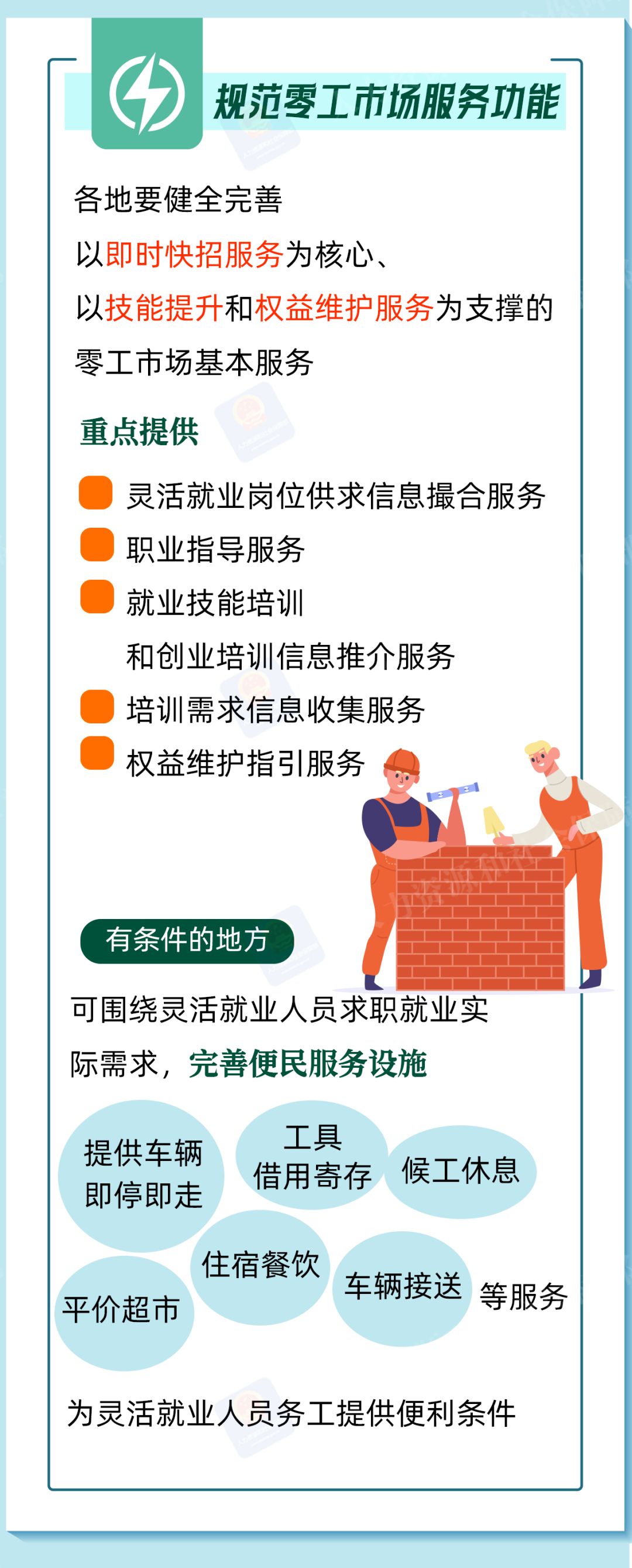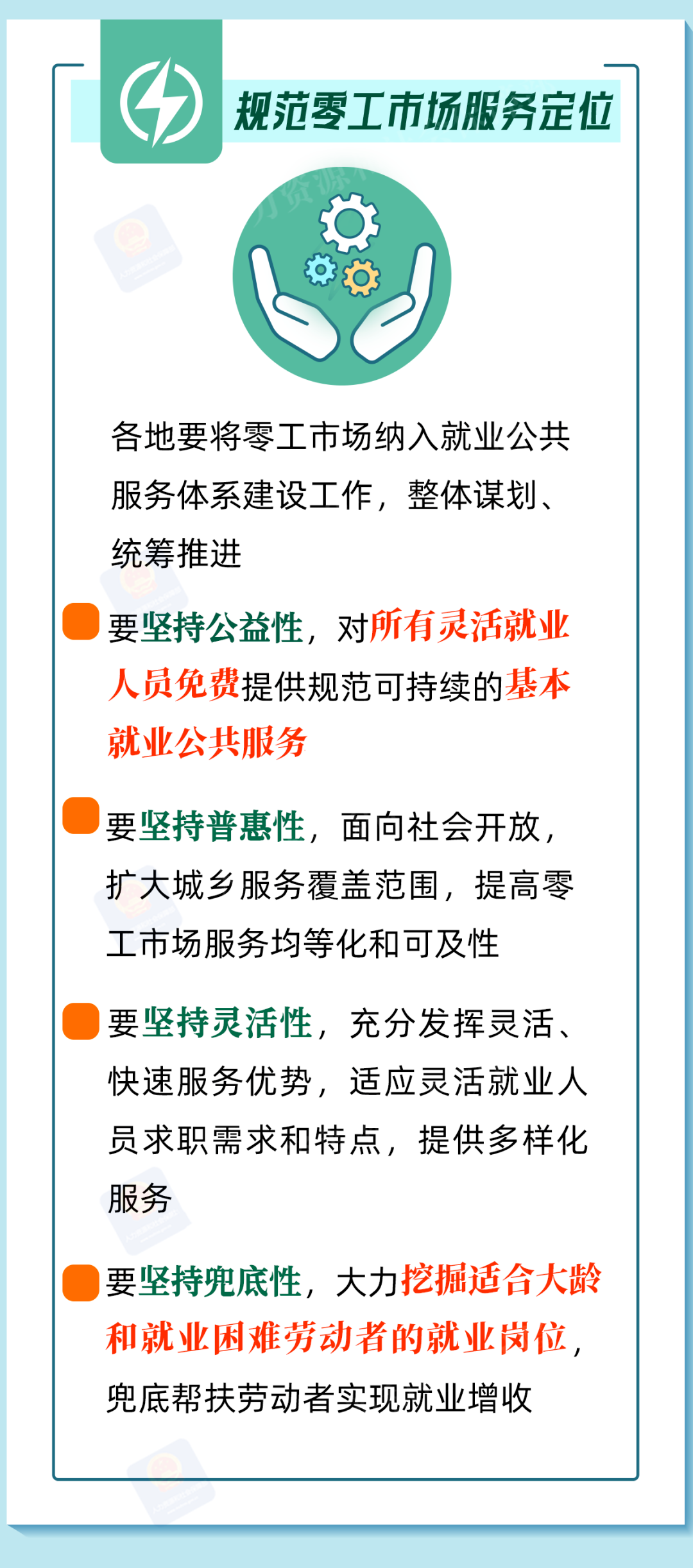 零工市场是向灵活就业人员与用工主体提供就业服务的重要载体。人力资源社会保障部印发《关于加强零工市场规范化建设的通知》,将零工市场纳入就业公共服务体系建设工作,带您一图看懂。