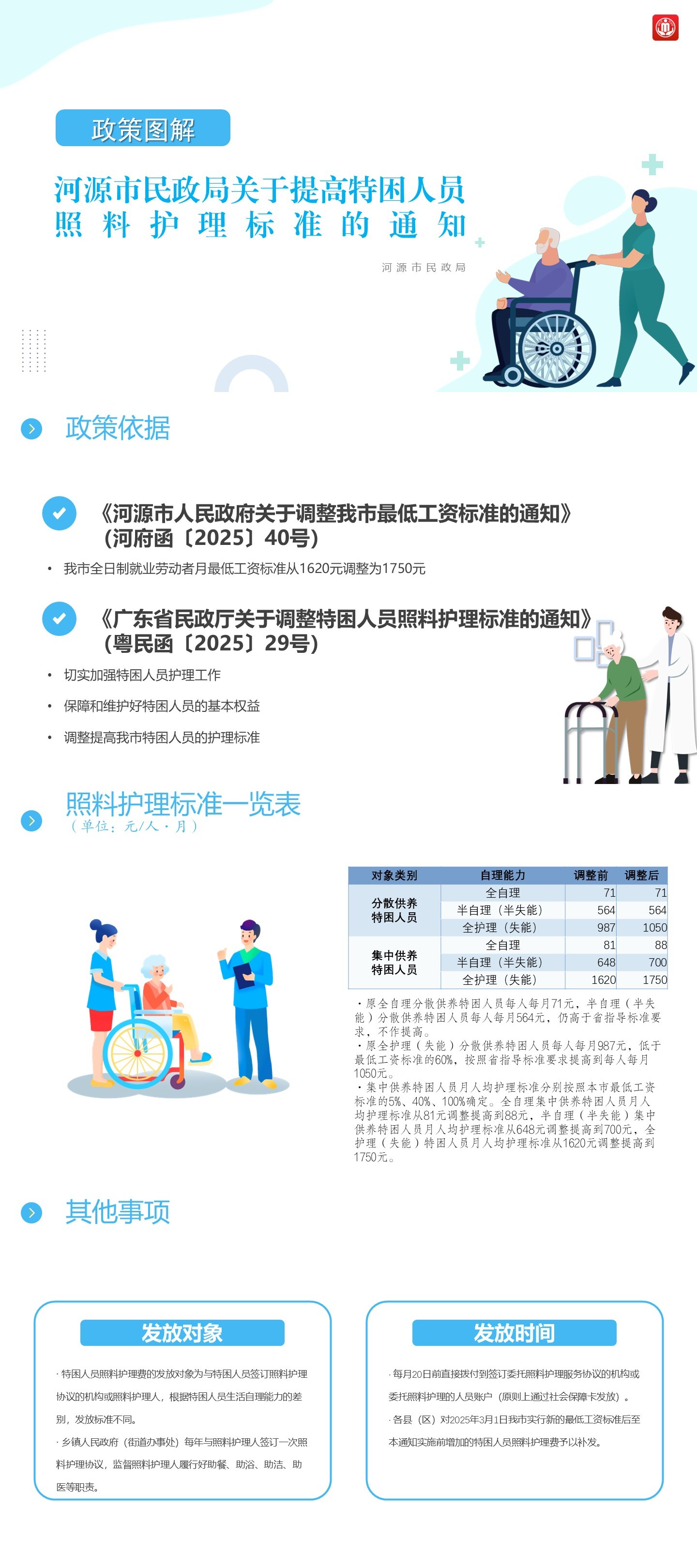 河源市民政局关于提高特困人员照料护理标准的通知政策图解