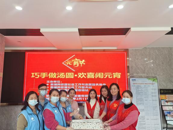 志愿携手齐发力,社区元宵绽活力。高埔岗街道社工站组织志愿者联合开展“巧手做汤圆•欢喜闹元宵”活动,为街道特殊群众和困难群体送去温暖与关怀。活动过程中,社工、志愿者和社区工作人员分成两组,引导大家制作汤圆。现场欢声笑语不断,氛围十分浓厚。