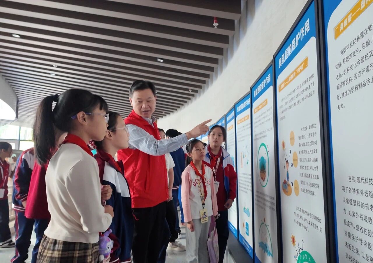 此次主题科普活动由市生态环境局大气科黄振华以《保护地球的防晒伞:认识消耗臭氧层物质》为主题,面向在场师生普及臭氧层保护知识和大气污染防治等法律法规,重点介绍了什么是臭氧层、臭氧层的作用、臭氧层破坏的危害、消耗臭氧层的物质等知识,引导大家增强臭氧层保护意识,自觉减少使用消耗臭氧层物质产品。 此外,师生们还参观了精心布置的消耗臭氧层物质科普巡展。据了解,该展览内容涵盖消耗臭氧层物质的基本概念、臭氧层破坏机理、国际履约进展、替代技术发展以及公众参与保护等多个维度,通过直观的图表数据、生动的案例分析和互动体验装置,使师生们在沉浸式观展过程中深化对臭氧层保护的认识。