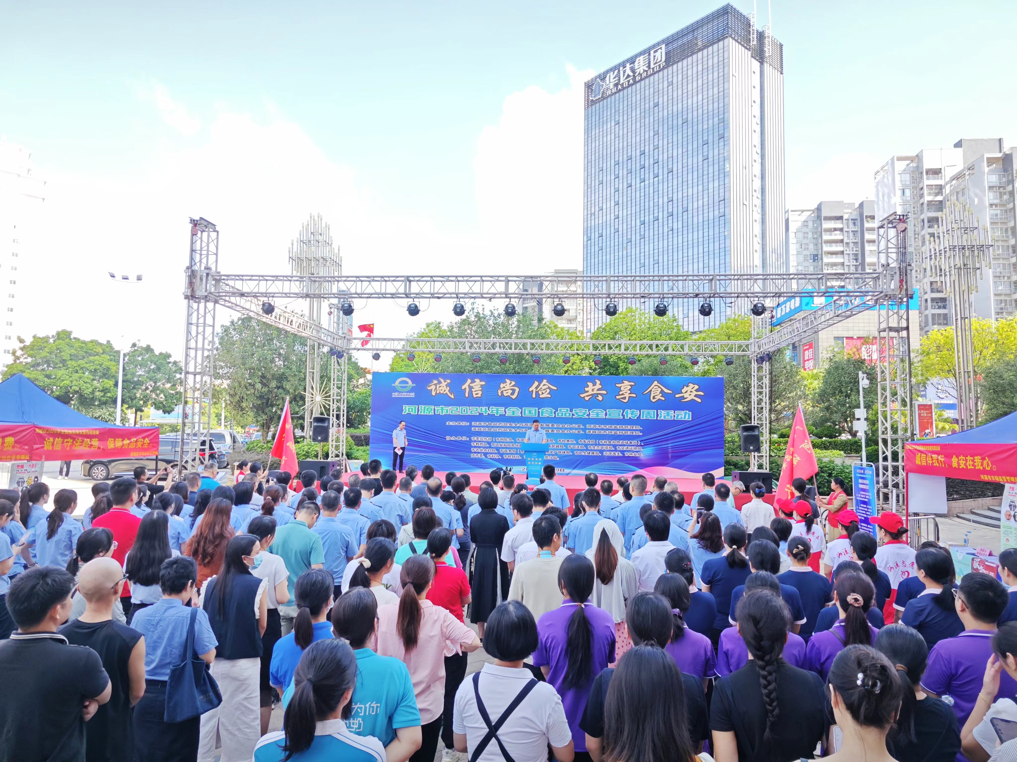 9月29日上午,我市在源城区万隆城购物中心正门广场举行以“诚信尚俭共享食安”为主题的2024年食品安全宣传周主场活动。市食药安办主任、市市场监管局党组书记、局长徐学章出席活动并致辞;市食药安办副主任、市市场监管局党组成员、副局长蒙立新主持活动。