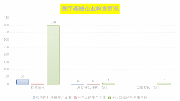 检查医疗器械经营使用单位398家次,发现违法违规单位8家,已完成整改单位7家。通过检查发现个别医疗器械使用单位涉嫌使用过期医疗器械,均依法移交稽查部门查处。日常检查情况及发现违法违规企业情况详见下表: