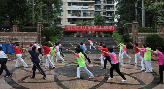 为丰富社区居民文化生活,由河源市文化广电旅游体育局主办,河源市文化馆承办的河源市2022年“柔力球”教学进社区文化志愿服务活动走进了源城区长鸿花园社区,深入开展文化志愿服务活动,积极引导我市文艺工作者走进基层群众,把文艺的温暖送到百姓身边,满足社区群众精神文化生活。
