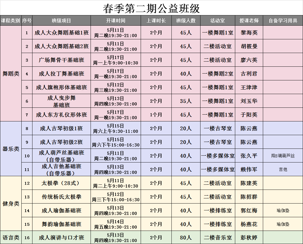 为不断满足人民群众对美好生活的新需求、新期待,不断提升人民群众对文化生活的获得感、幸福感,2021年河源市文化馆春季公益培训班实施“菜单式”个性化的文化服务,通过广泛征集群众意愿安排课程内容,让群众来“点单”,开设形式多样、内容丰富的公益培训活动,以亲切的姿态、优美的环境、优良的设施,让更多渴望得到文化滋养的人在文化馆尽情地汲取文化艺术的养分,用文化艺术照亮生活,滋润精神和心灵。