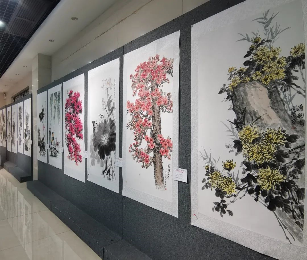 此次展览展出了100副作品。书法、美术公益班师生们用手中的笔墨,从不同角度抒发了对党、对祖国的无限热爱。