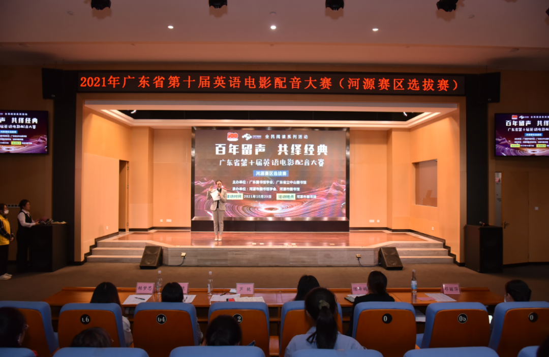 “广东省英语电影配音大赛”由广东图书馆学会和省立中山图书馆联合主办,自 2012 年创办以来,深受读者喜爱和社会各界广泛参与。本次电影配音大赛河源赛区选拔赛由河源市图书馆学会和河源市图书馆承办,作为全民阅读系列活动之一,配音大赛用电影配音艺术助力经典阅读推广,进一步丰富读者文化生活,提升读者文化艺术修养,搭建广大英语爱好者展示自我与友好交流的平台。