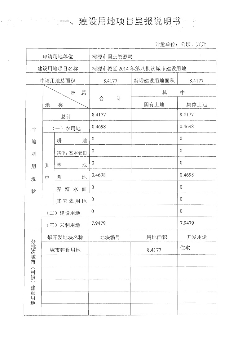 河源市城区2014年度第八批次城镇建设用地项目一书三方案