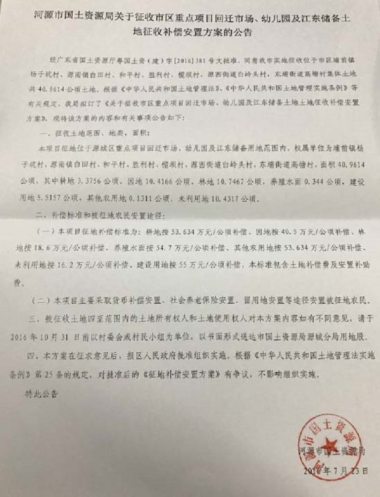 征地补偿安置方案公告信息