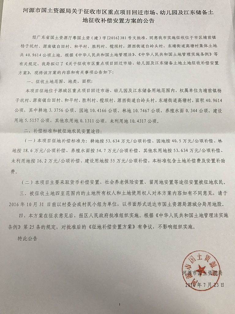 征地补偿安置方案公告信息