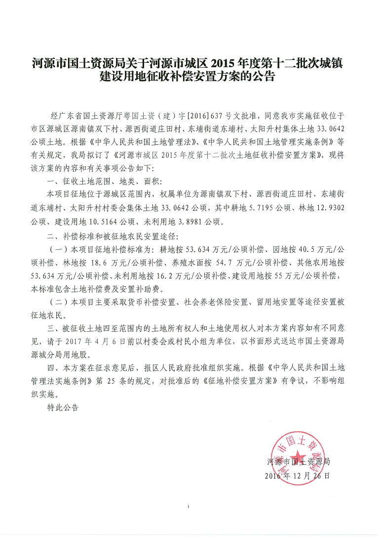 河源市城区2015年度第十二批次城镇建设用地