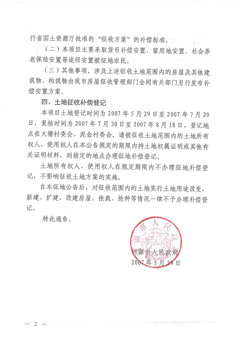 98色花堂 关于河源市城区2006年第四批次土地征收的通告