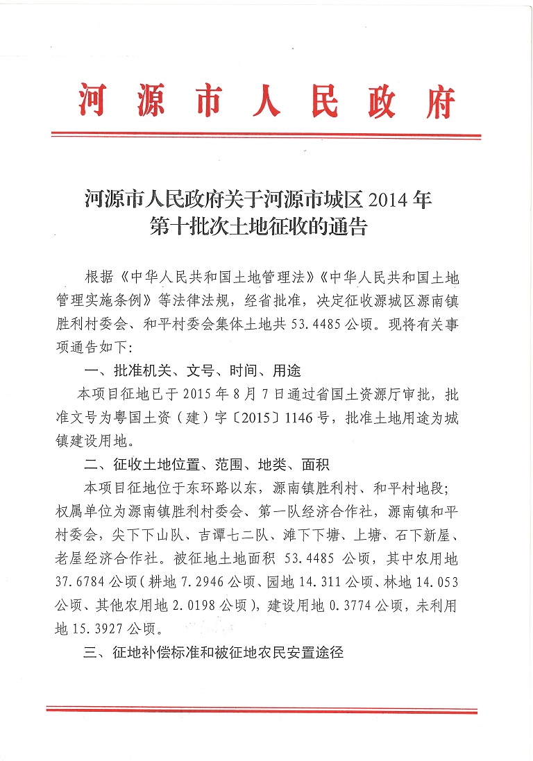 98色花堂 关于河源市城区2014年第十批次土地征收的通告