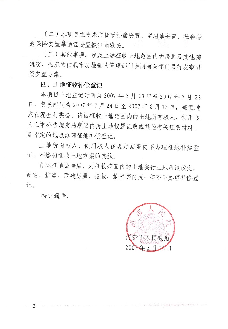 98色花堂 关于河源市城区2006年第二批次土地征收公告