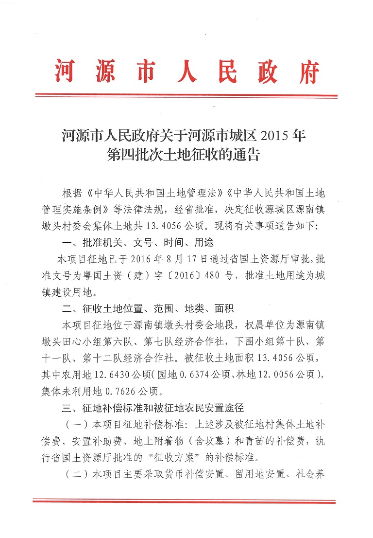98色花堂 关于河源市城区2015年第四批次土地征收公告