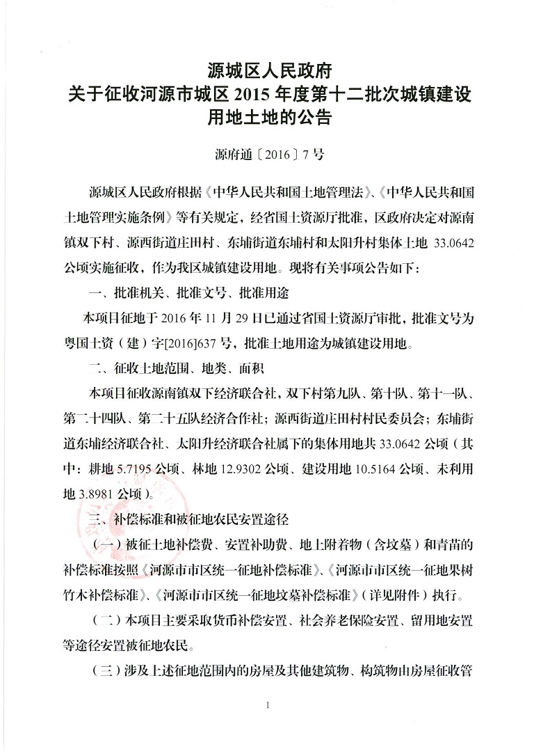 河源市城区2015年度第十二批次城镇建设用地