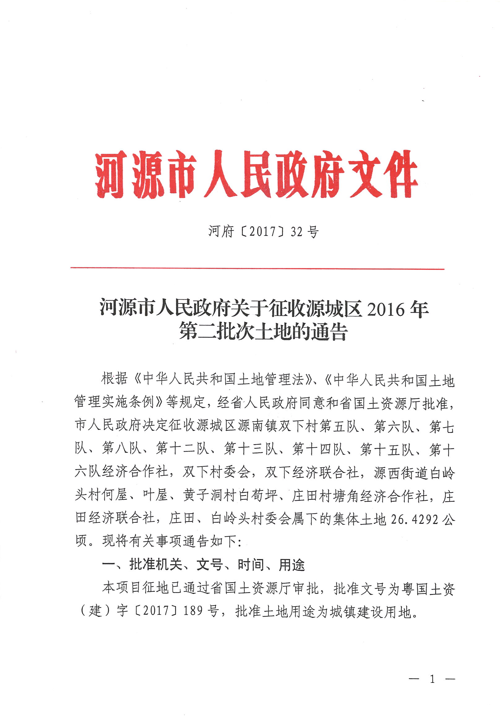 98色花堂 关于河源市城区2016年第二批次土地征收的公告