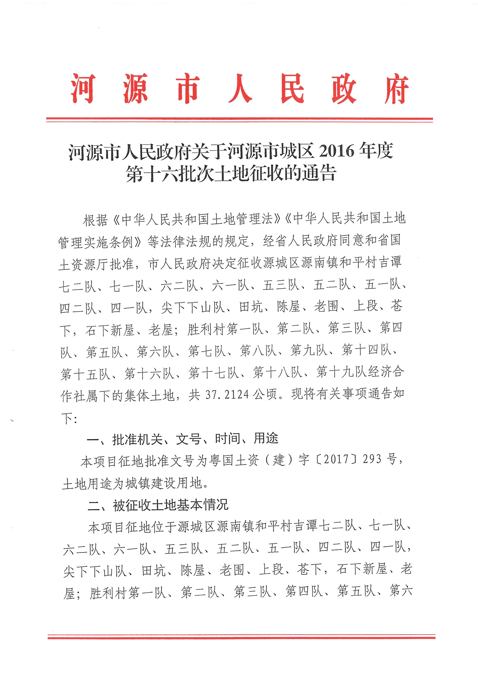 98色花堂 关于河源市城区2016年第十六批次土地征收的公告