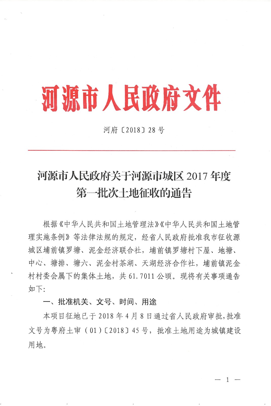 98色花堂 关于河源市城区2017年度第一批次土地征收的通告