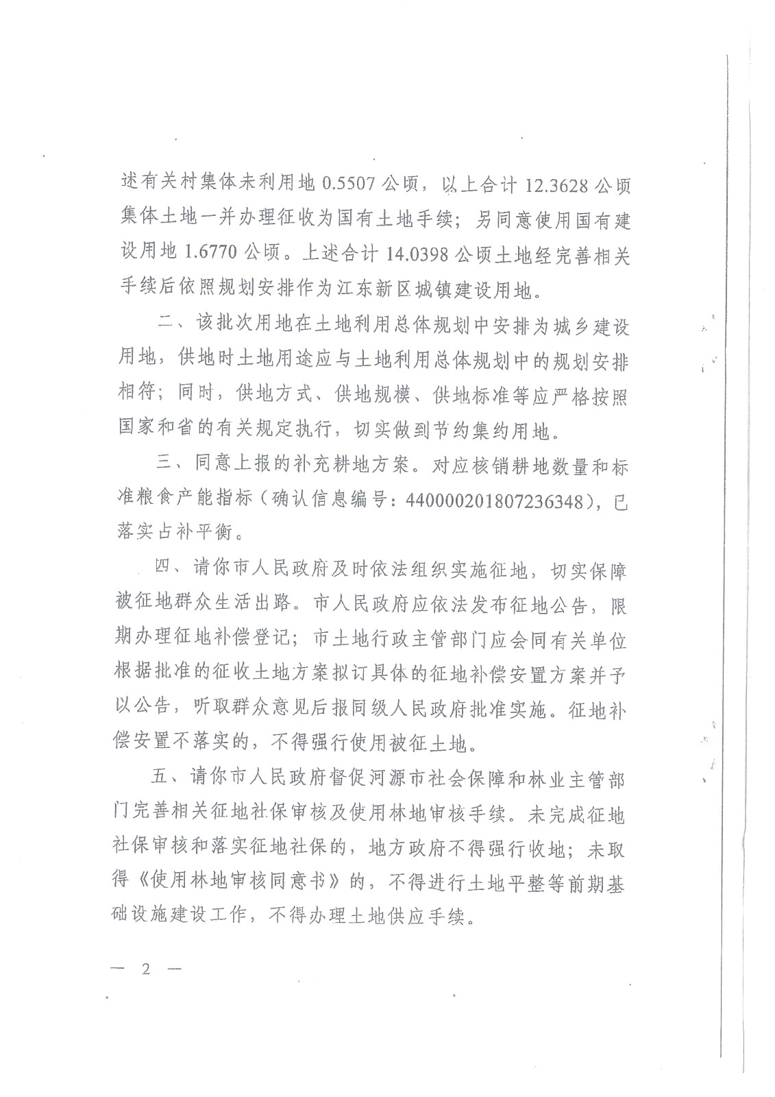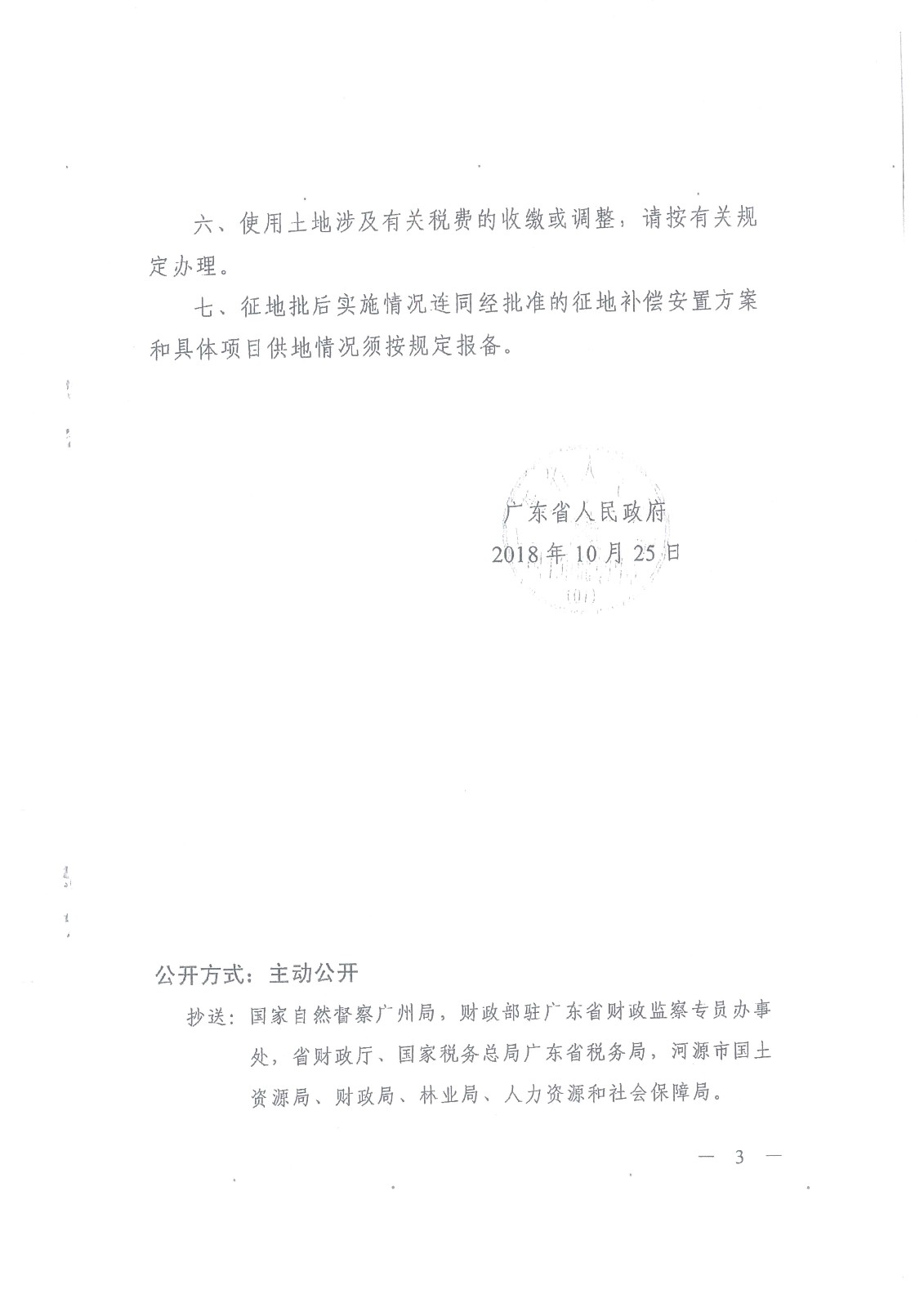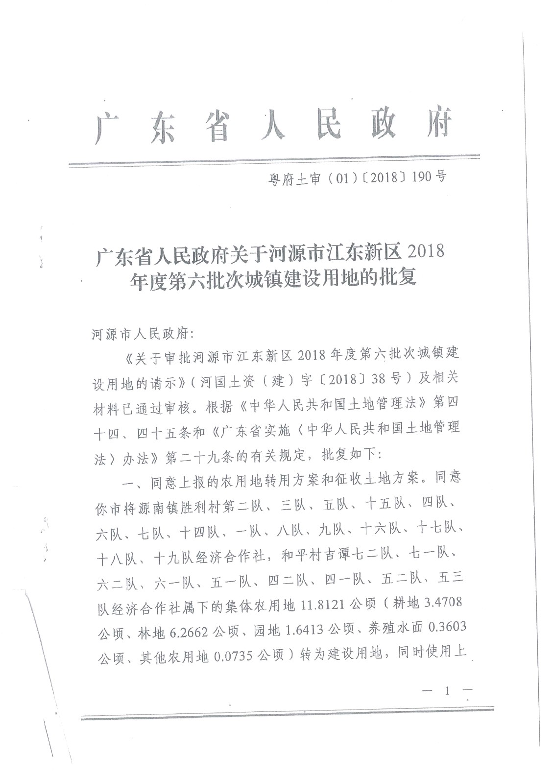 广东省人民政府关于河源东江新区2018年度第六批次城镇建设用地的批复