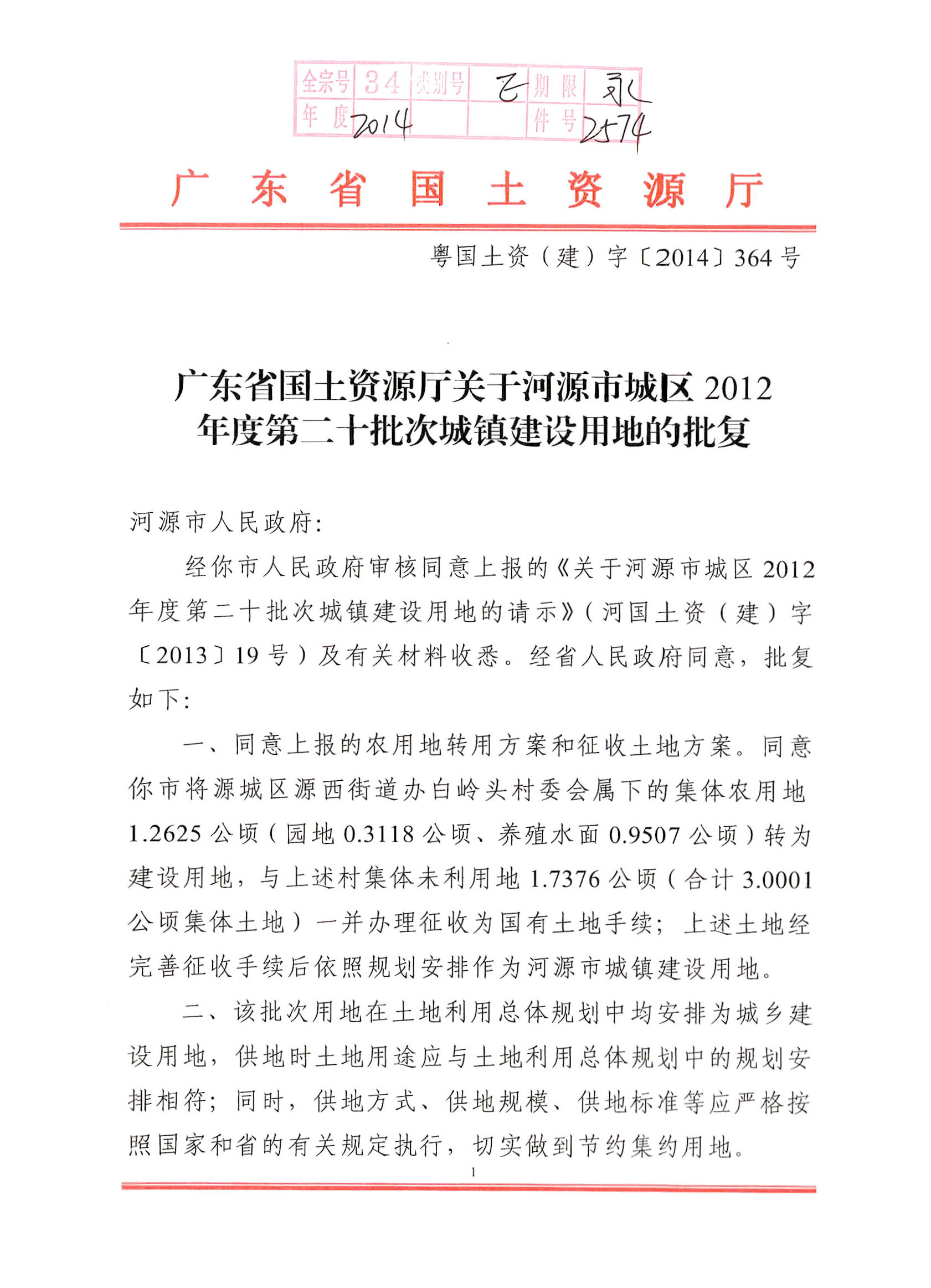 河源市城区2012年度第二十批次城镇建设用地