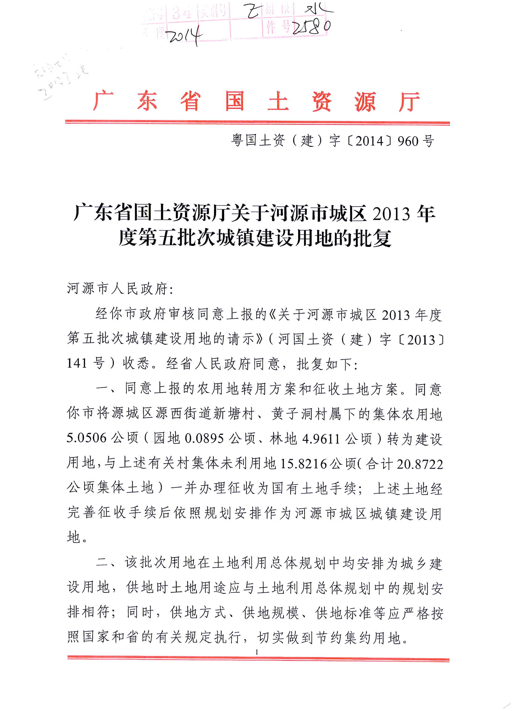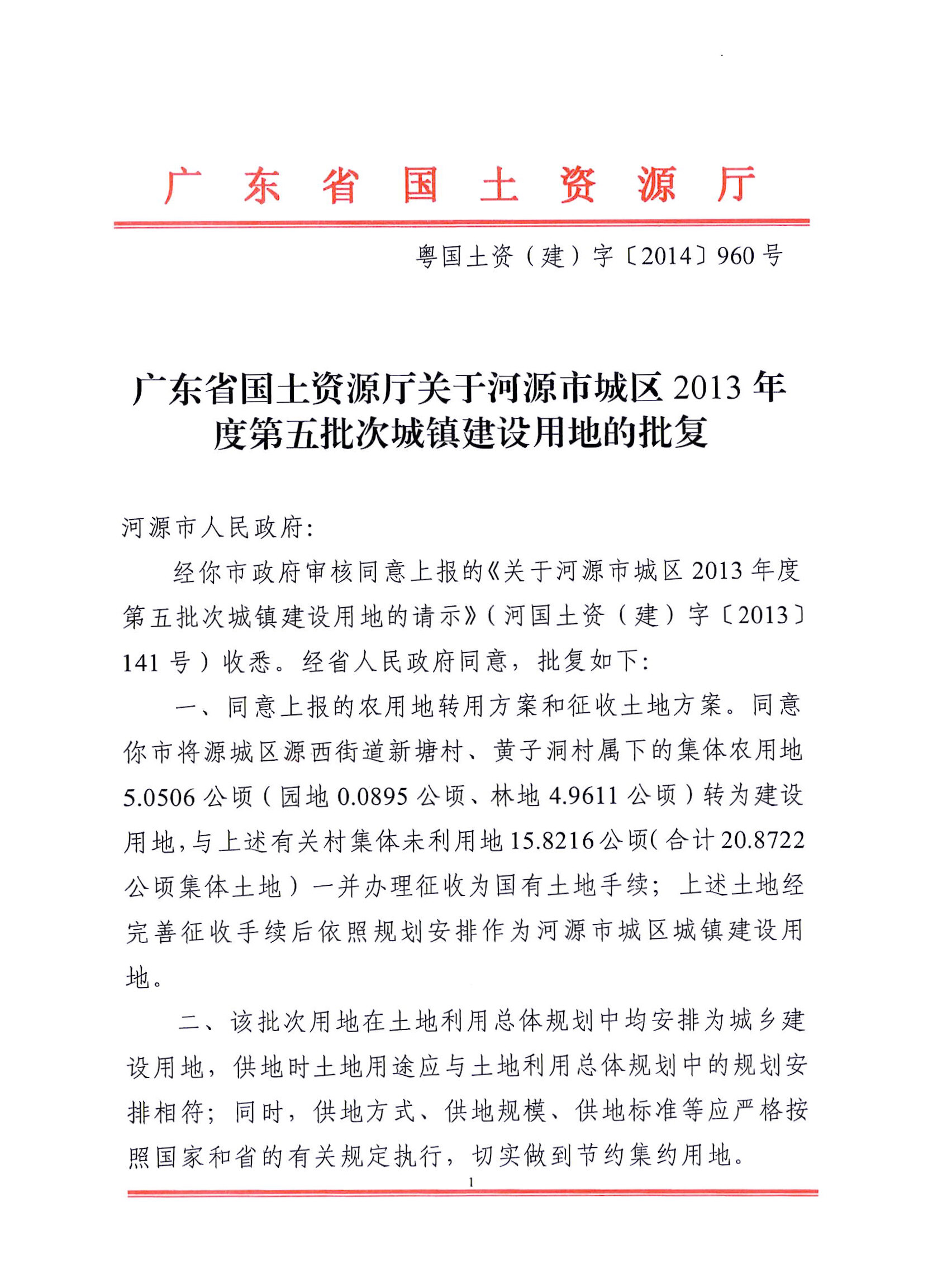 河源市城区2013年度第五批次城镇建设用地