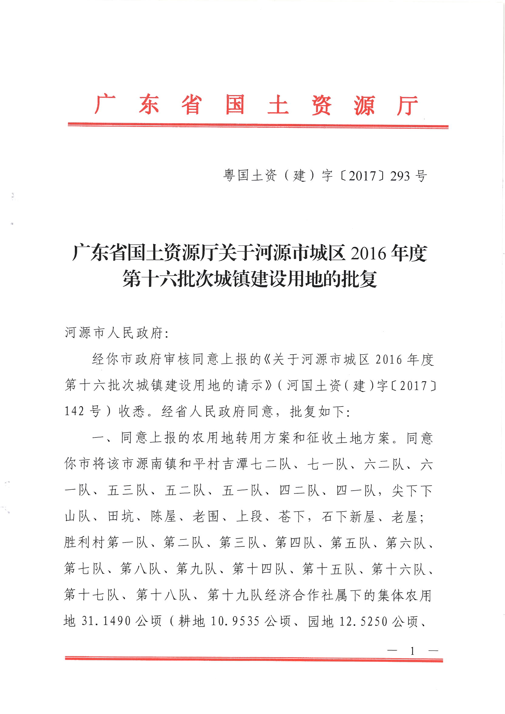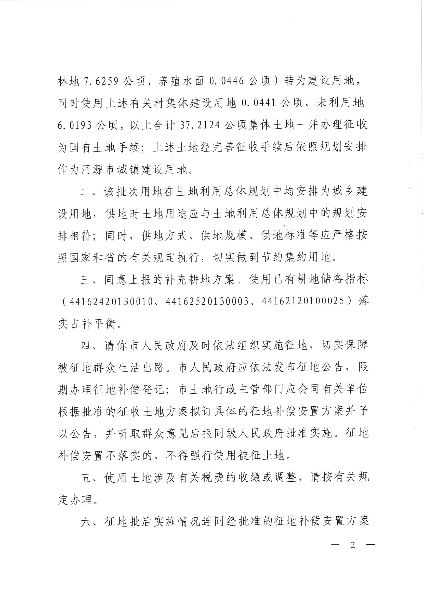 广东省国土资源厅关于河源市城区2016年度第十六批次城镇建设用地的批复