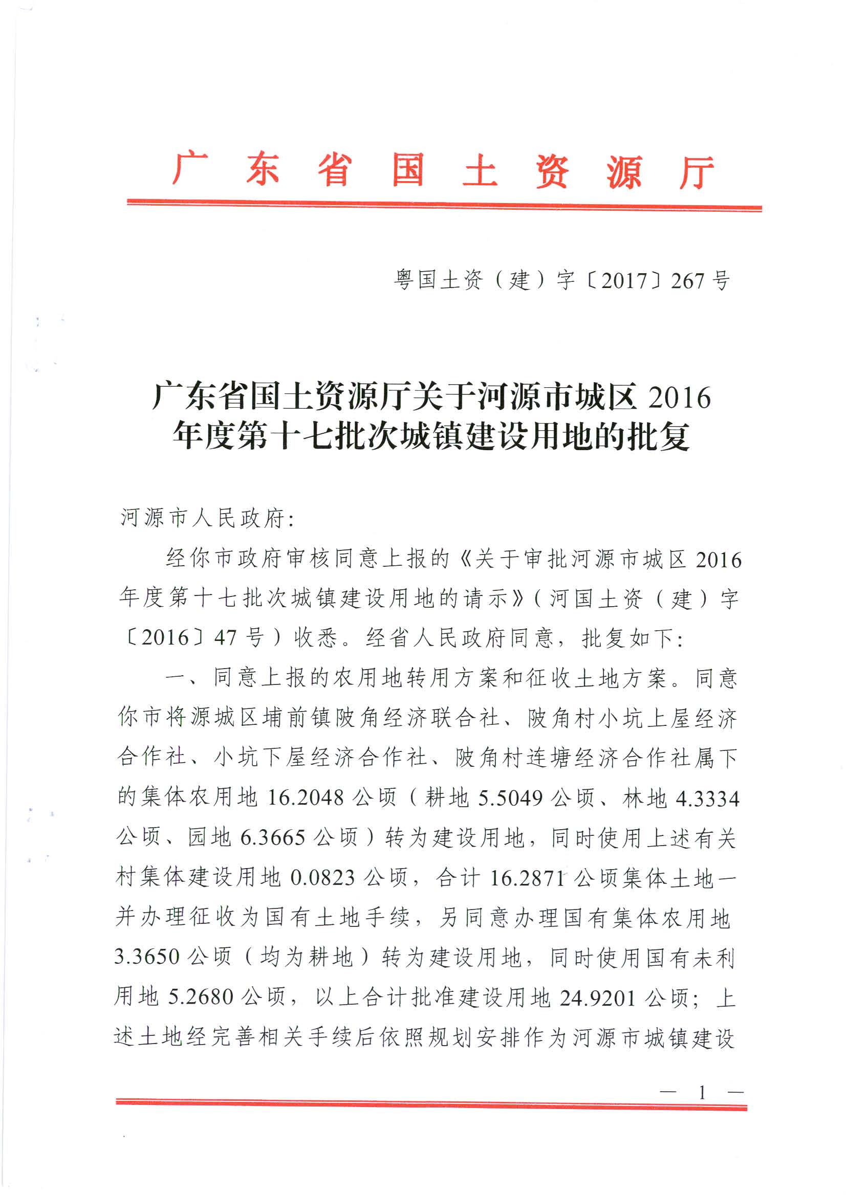 河源市源城区2016年度第十七批次城镇建设用地批复