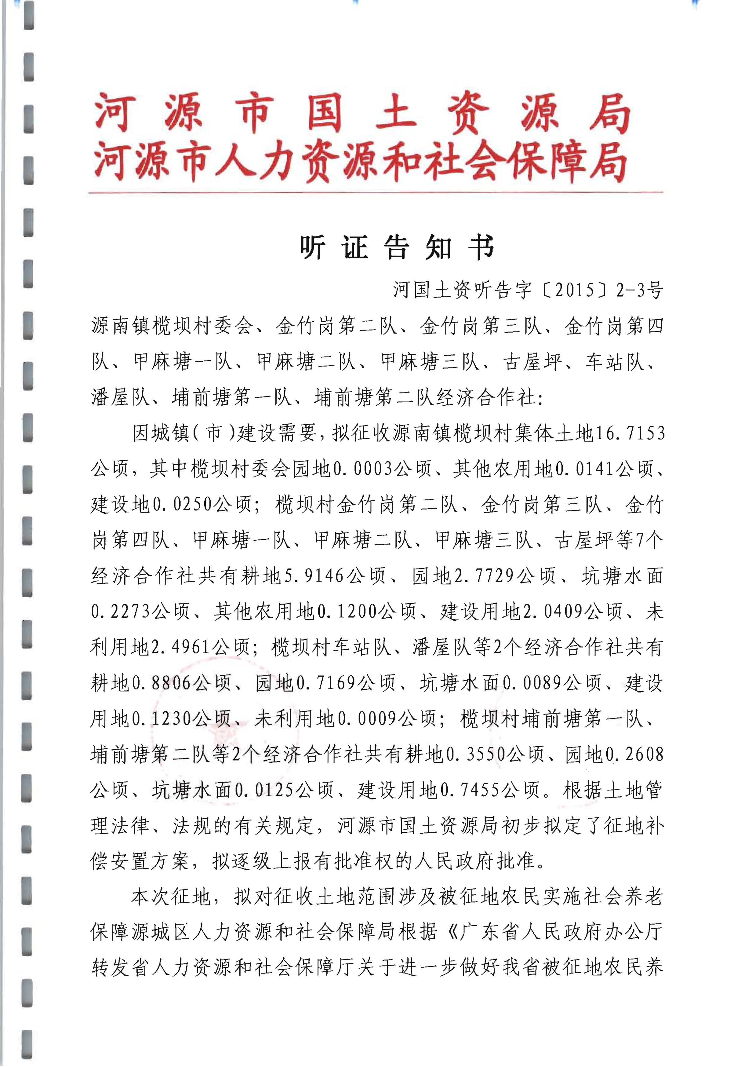 河国土资听告字[2015]2-3号