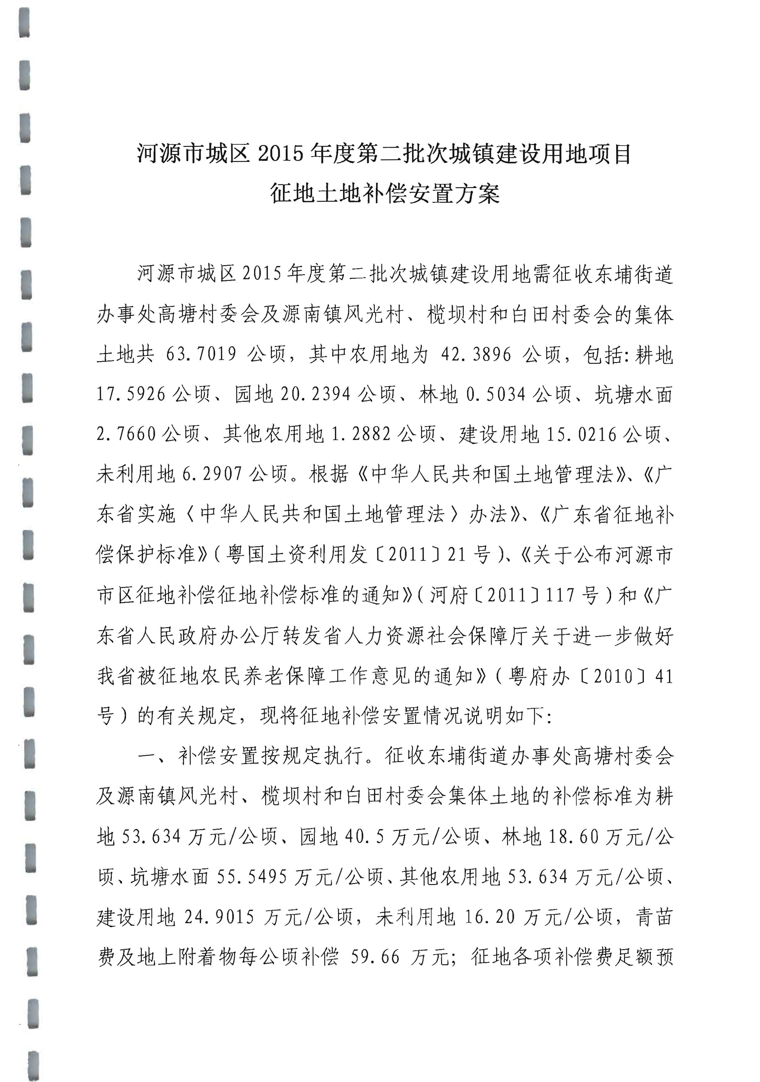 河源市城区2015年度第二批次城镇建设用地项目征地土地补偿安置方案