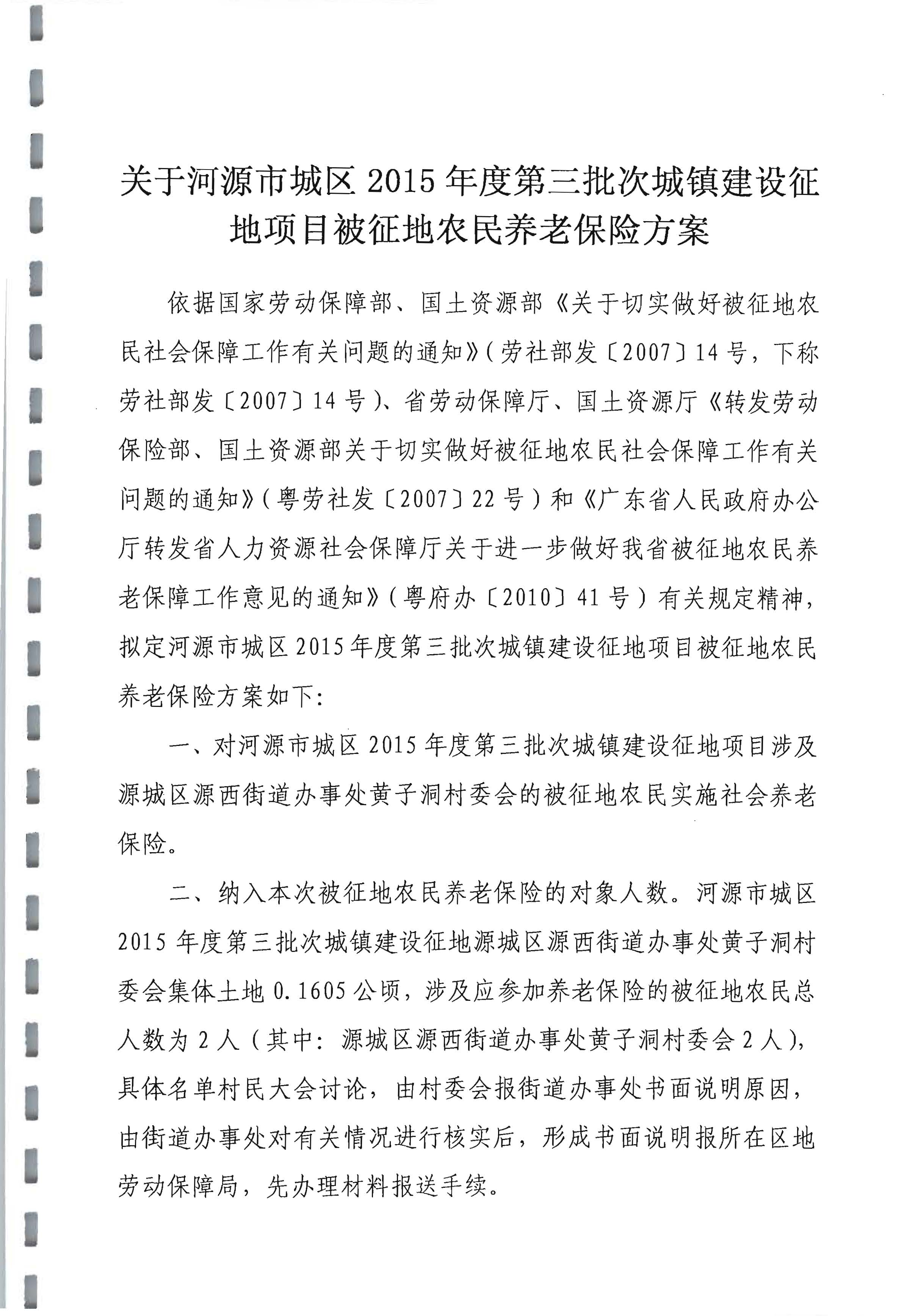 关于河源市城区2015年度第三批次城镇建设征地项目被征地农民养老保险方案