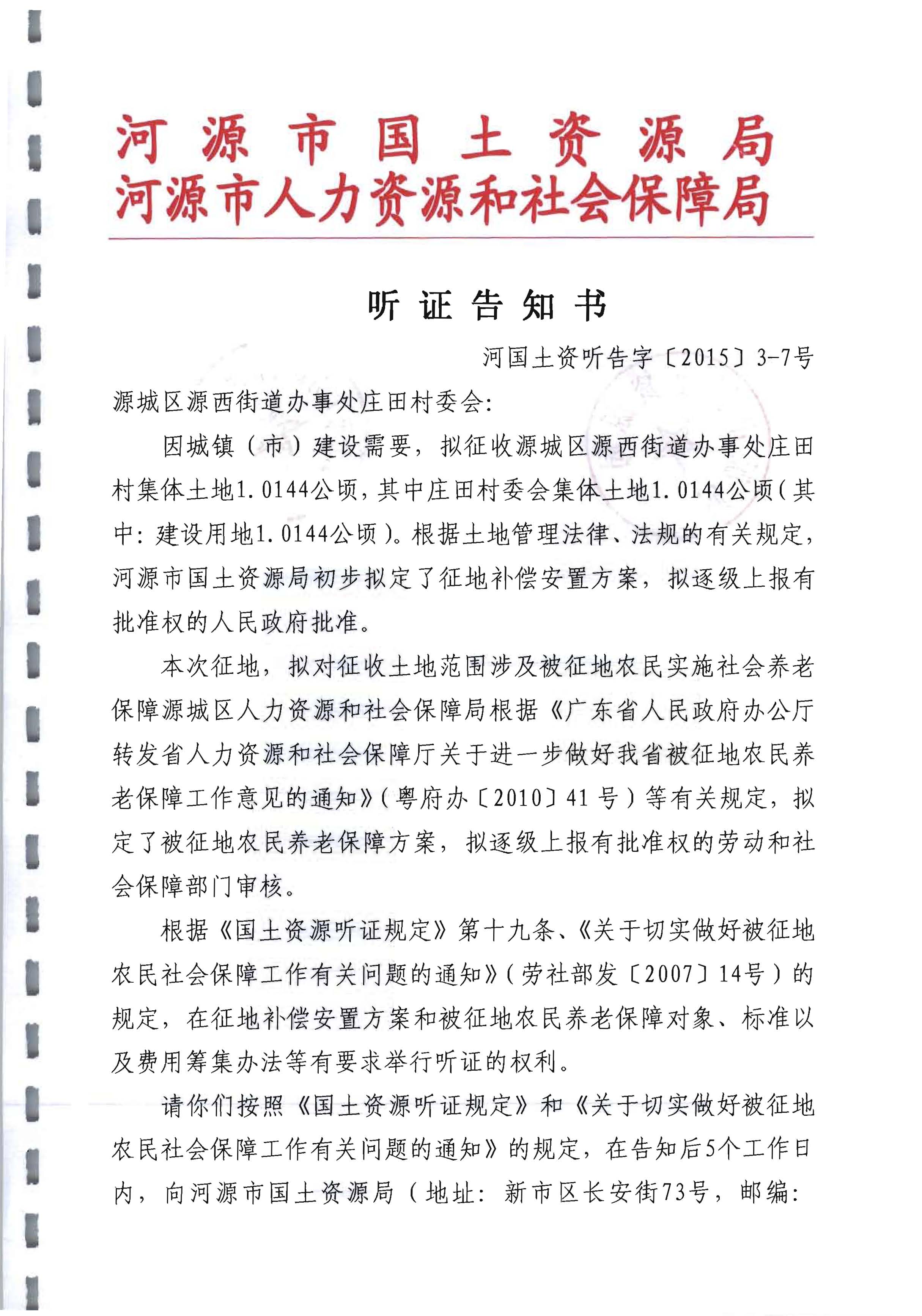 河国土资听告字[2015]3-7号