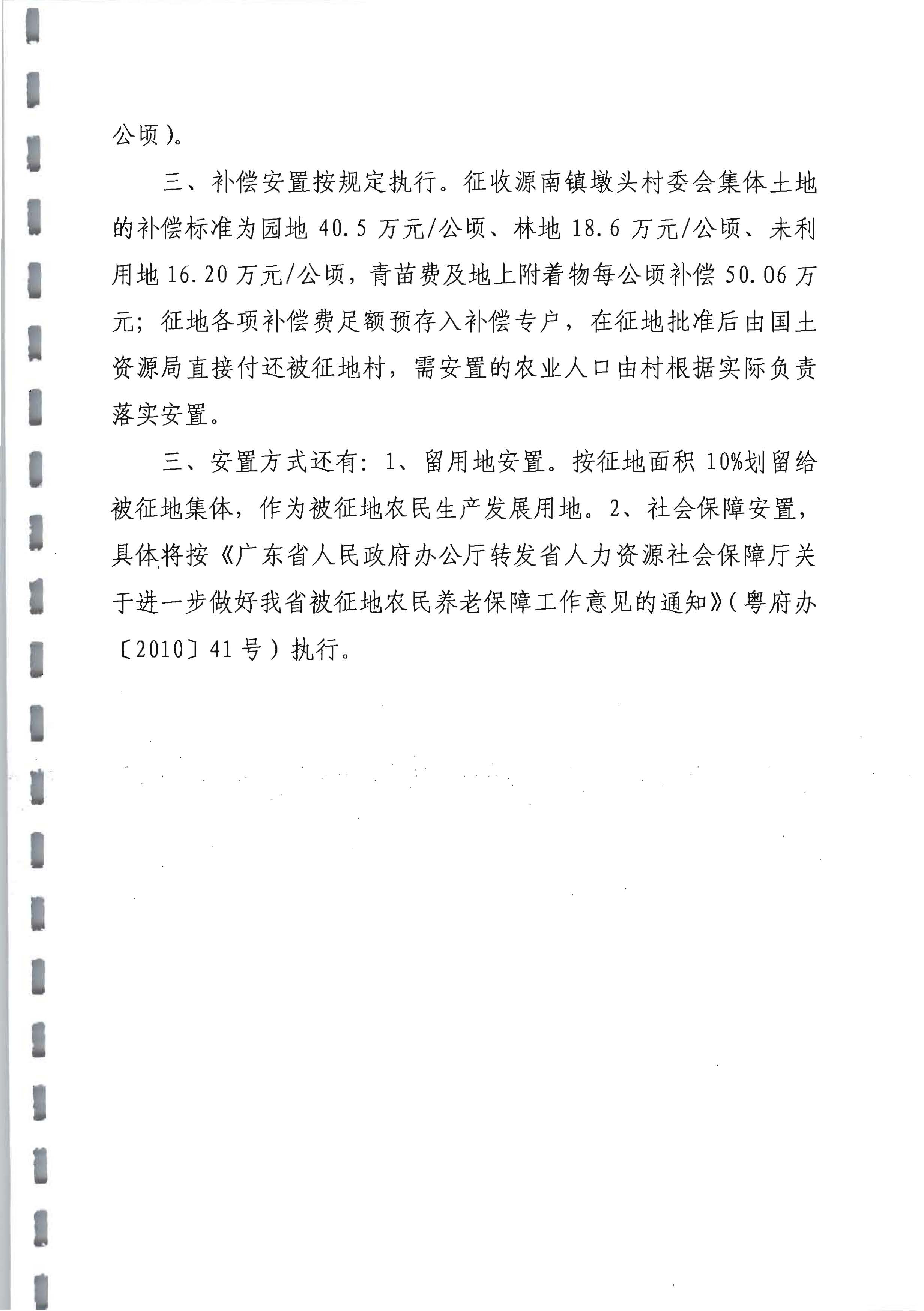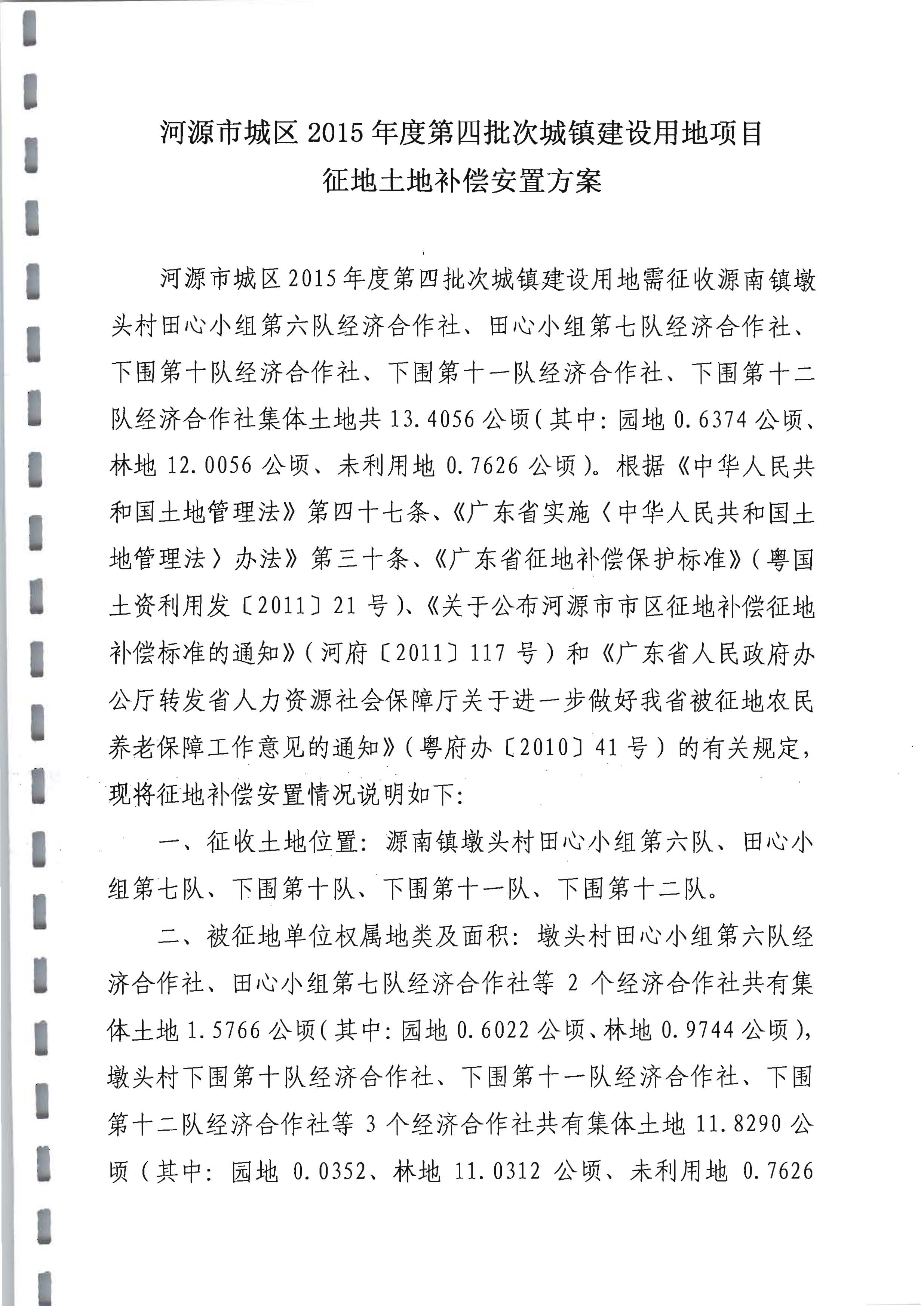 河源市城区2015年度第四批次城镇建设用地项目征地土地补偿安置方案