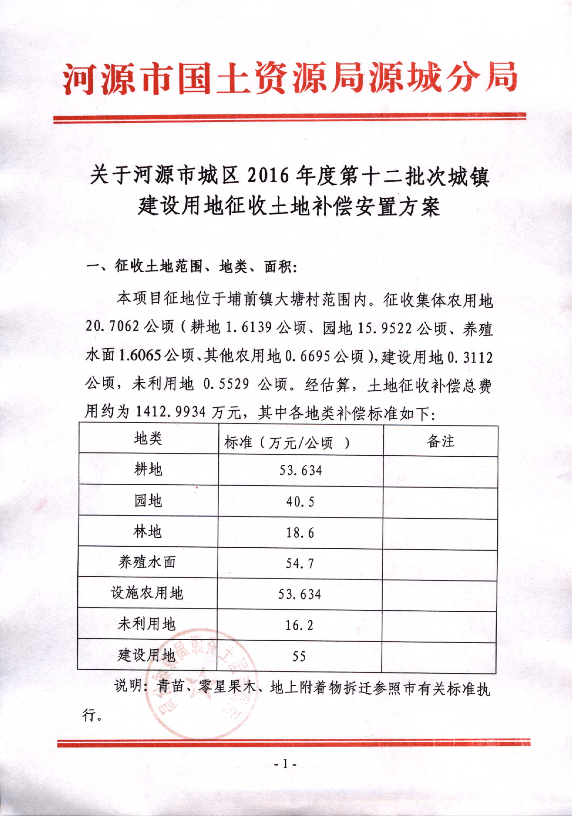 2016年度第十二批次用地听证信息