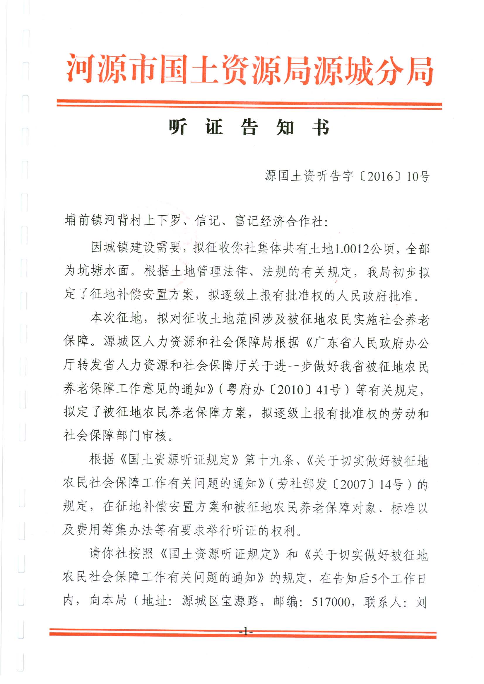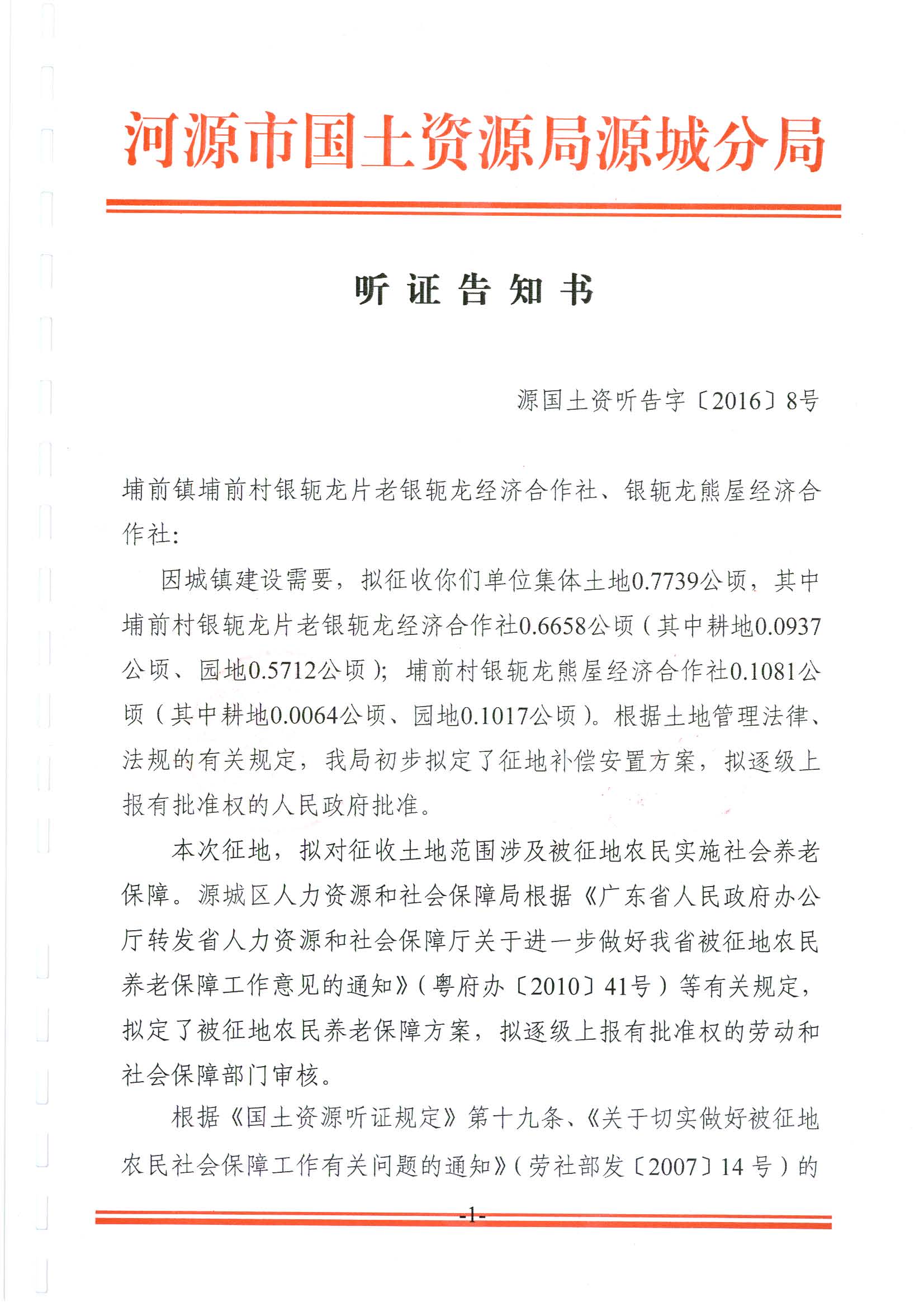 河源市国土资源局关于河源市城区2016年第十八批次土地听证信息