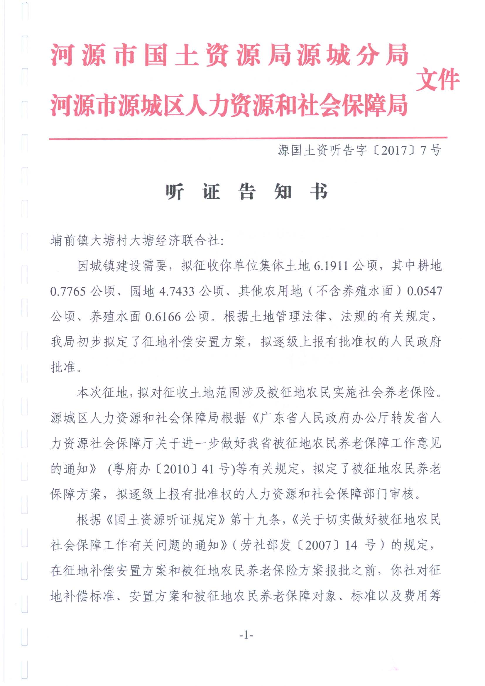 河源市城区2017年度第十四批次城镇建设用地听证材料